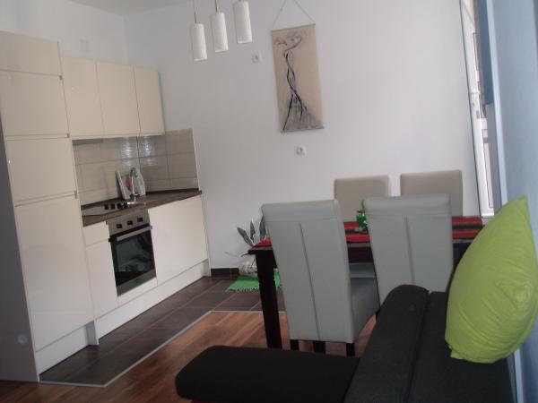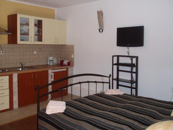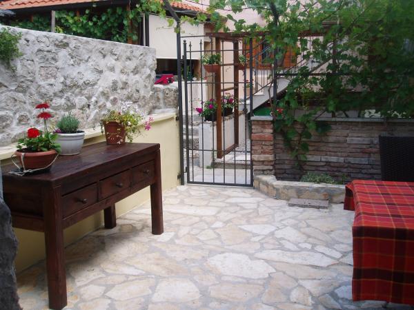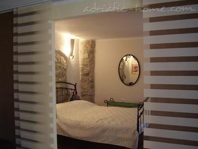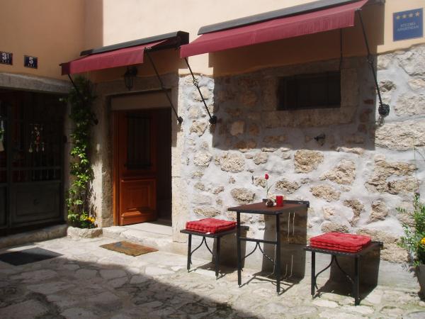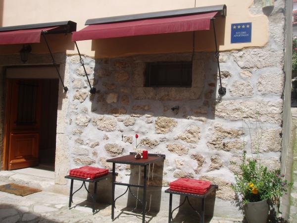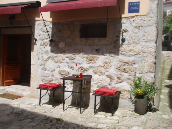 Centrum Krku, městská vila. 4hvězdičkové apartmány, zařízené v rustikálním stylu, s moderním vybavením, kuchyní, klimatizací, TV. Vila se nachází v srdci starého města a v klidné části ulice, pouhých 70 metrů od pláže. Parkování v blízkosti na soukromém parkovišti.