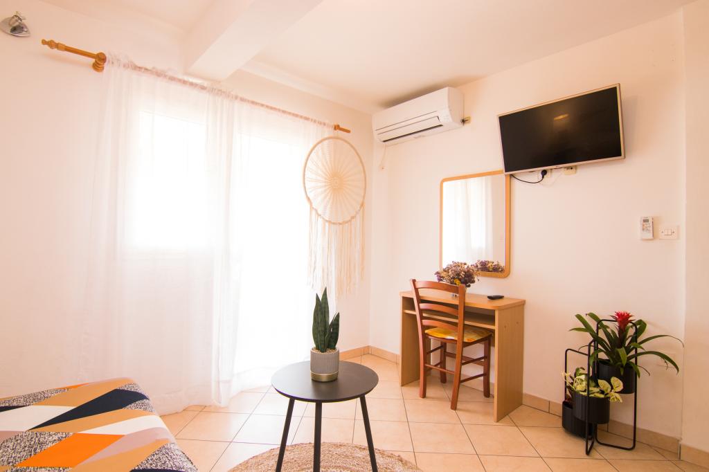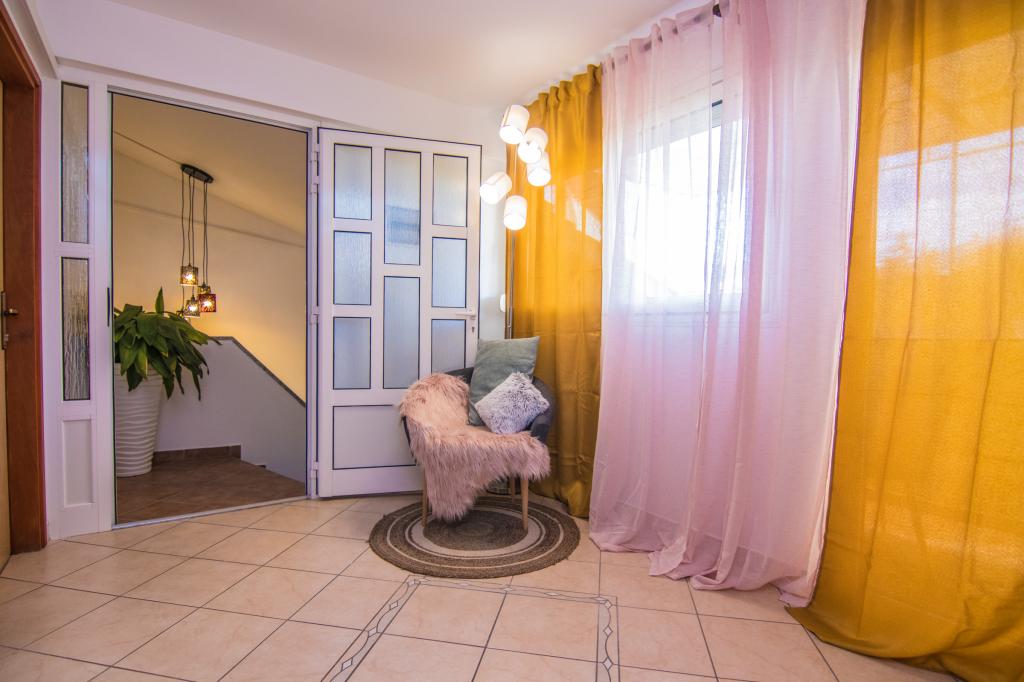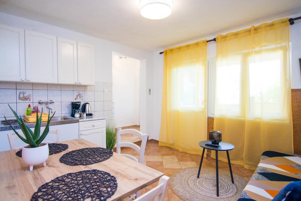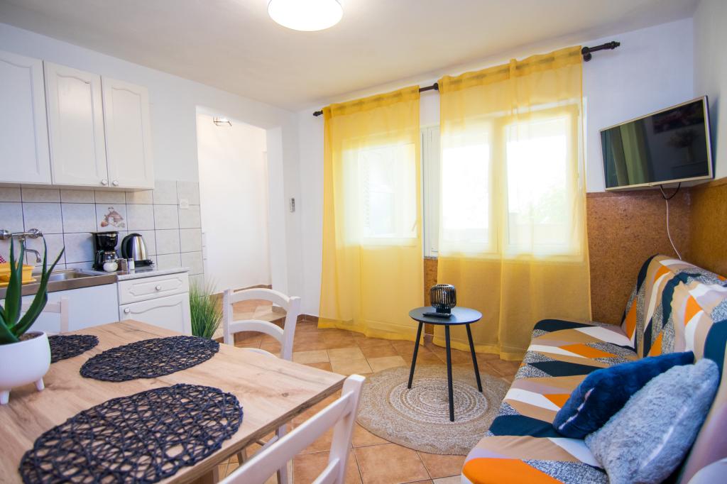 Dům se nachází v samém centru města, pouhých 90 m od moře a krásné promenády s mnoha restauracemi, kavárnami a dalším vybavením. V blízkosti domu hosté najdou obchody, banku, poštu, lékárnu a podobně. Dvůr domu je prostorný, kde je dostatek místa pro parkování aut hostů. Je obklopen středomořskými rostlinami a květinami. Hosté mohou také využít společný gril umístěný za domem. Všechny byty mají terasu nebo balkon a některé jednotky mají dokonce dvě terasy nebo dva balkony. Okolí je klidné a bezpečné. Z některých apartmánů je vidět na moře. Každá jednotka má klimatizaci, satelitní TV, internet a kávovar.