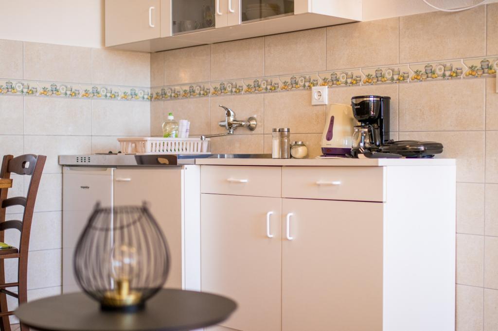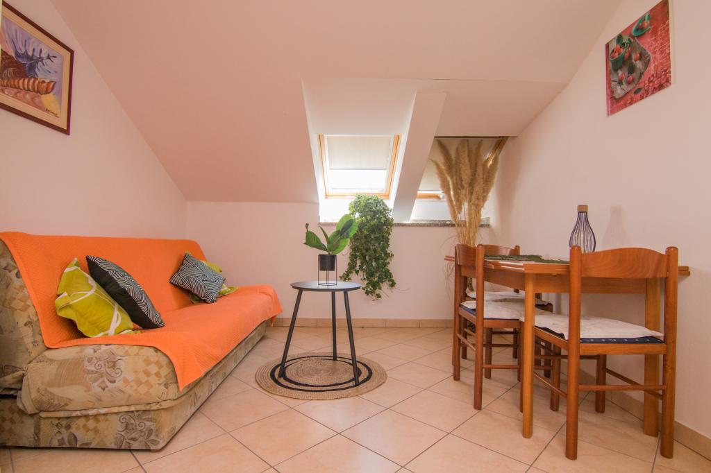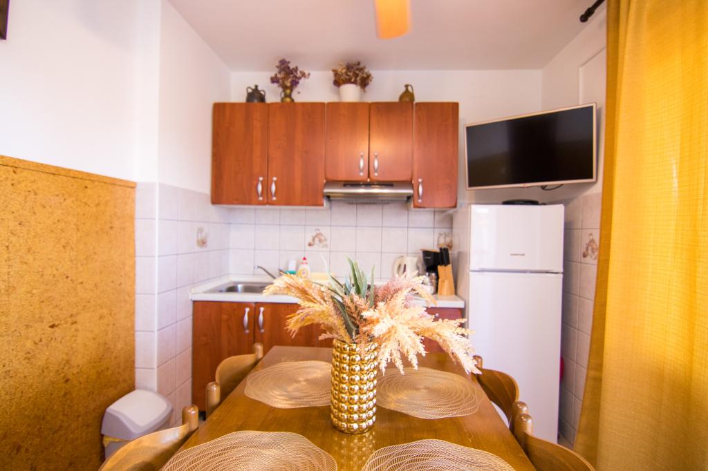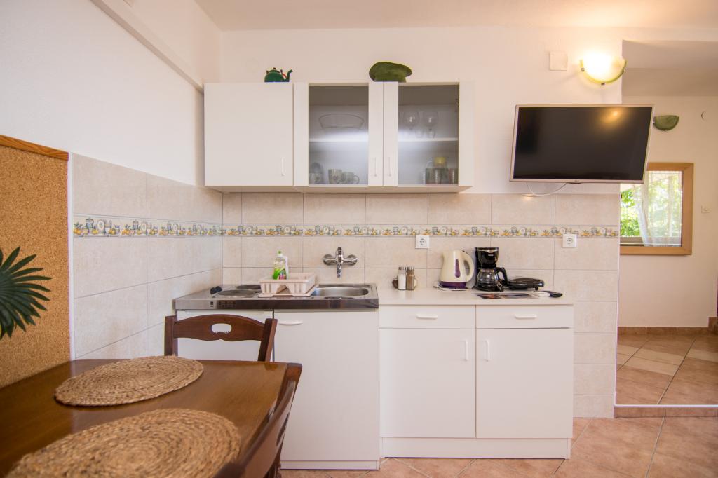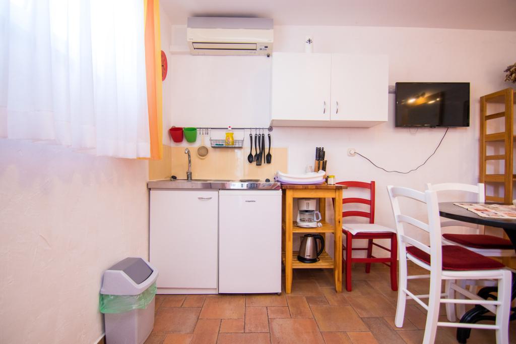 Dům se nachází v samém centru města, pouhých 90 m od moře a krásné promenády s mnoha restauracemi, kavárnami a dalším vybavením. V blízkosti domu hosté najdou obchody, banku, poštu, lékárnu a podobně. Dvůr domu je prostorný, kde je dostatek místa pro parkování aut hostů. Je obklopen středomořskými rostlinami a květinami. Hosté mohou také využít společný gril umístěný za domem. Všechny byty mají terasu nebo balkon a některé jednotky mají dokonce dvě terasy nebo dva balkony. Okolí je klidné a bezpečné. Z některých apartmánů je vidět na moře. Každá jednotka má klimatizaci, satelitní TV, internet a kávovar.