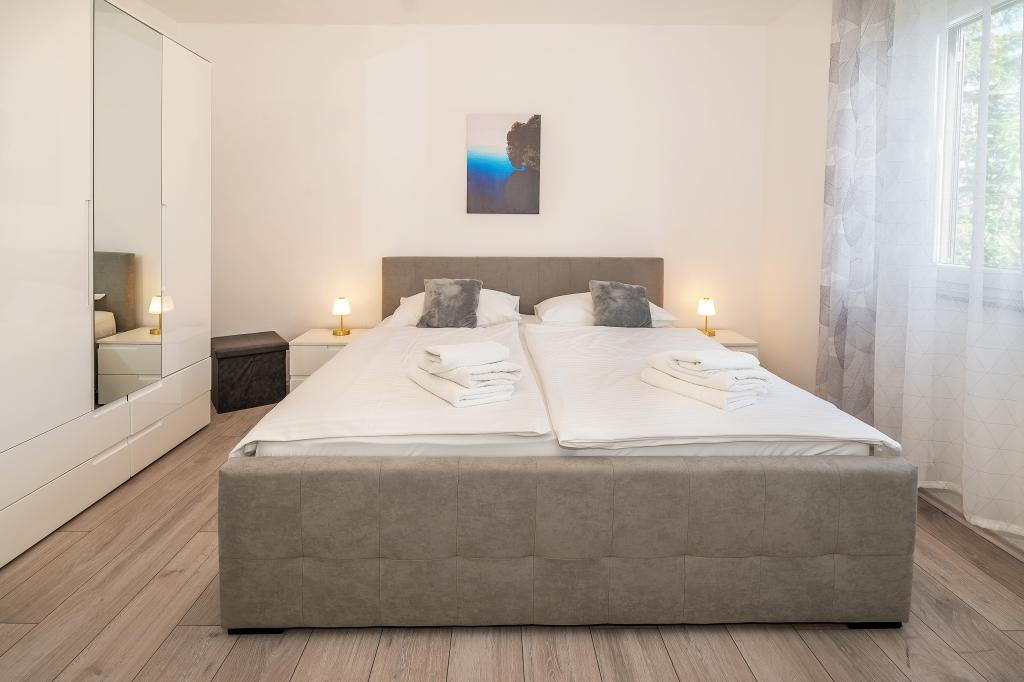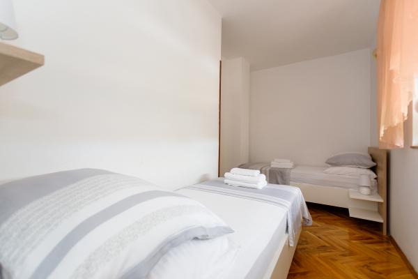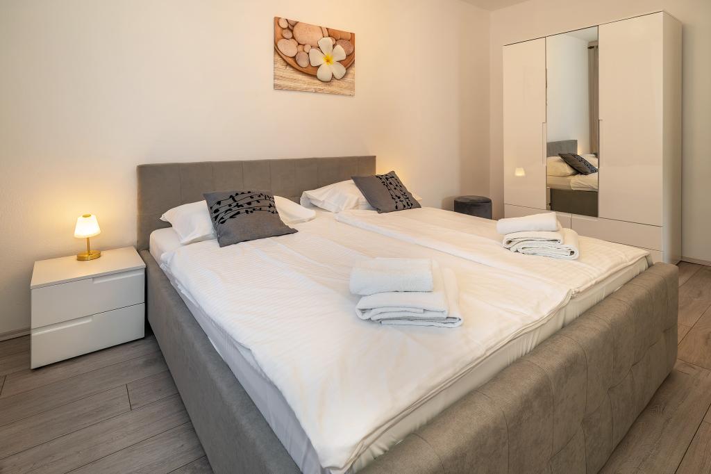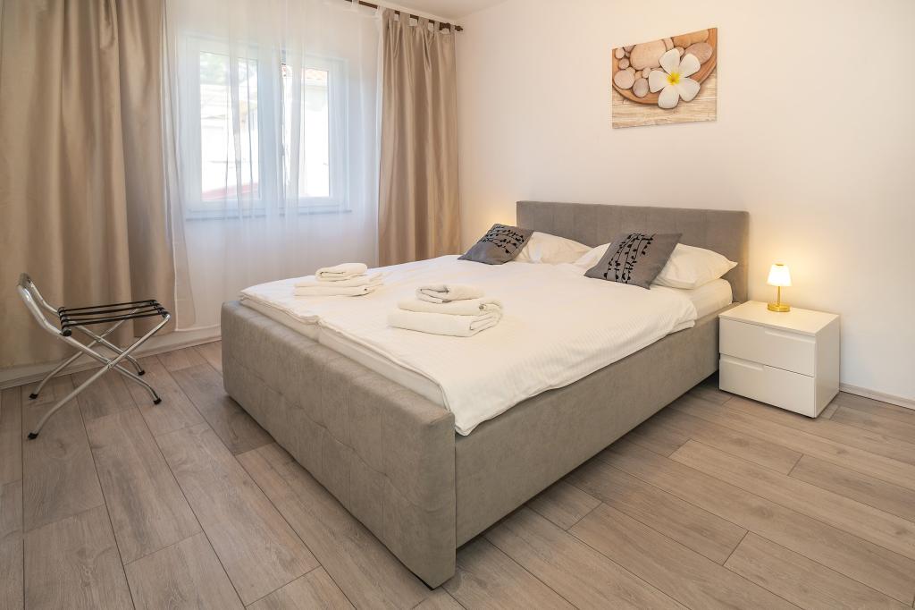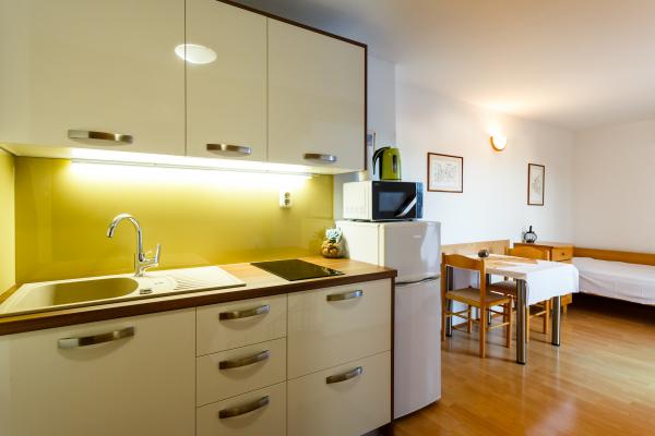 Přečtěte si více Ubytovací jednotkyV ceně je zahrnuto: Pronájem bytu a používání všech spotřebičů, spotřeba elektřiny, spotřeba vody, klimatizace, televize, bezdrátové připojení k internetu, závěrečný úklid, týdenní výměna veškerého ložního prádla (prostěradla, ubrusy, ručníky, utěrky), pobytová taxa, ekologická daň. V každém apartmánu je k dispozici přistýlka za příplatek 9,00 Euro/den. Pobyt kratší než 4 noci je zpoplatněn o 30 % více. V hlavní sezóně je možné apartmán pronajmout na 7 a více dní. Při potvrzení rezervace je nutné uhradit zálohu ve výši 20% z celkové ceny. Čas vstupu do apartmánu je ve 13 hodin a čas odjezdu v 10 hodin.
