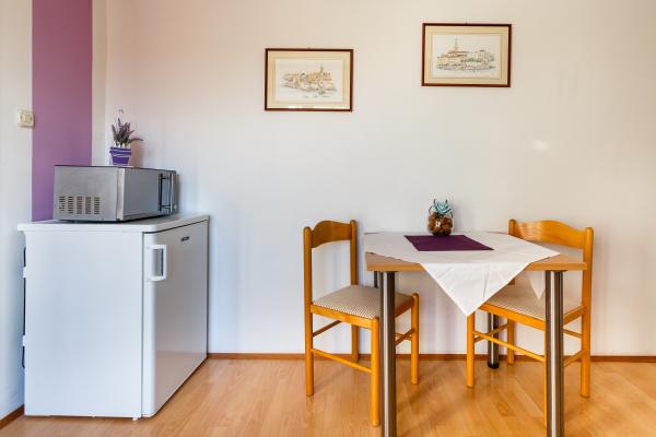 Dům s apartmány se nachází v samém centru města Krk, v blízkosti veškerého potřebného vybavení. Majitel bydlí v domě a je vždy k dispozici a mluví plynně italsky, německy a anglicky. Kuchyně ve všech apartmánech jsou nově zařízené a plně vybavené (myčka, mikrovlnná trouba, toustovač, kávovar a varná konvice). K bytu náleží i parkovací stání. Před domem je společný gril a stůl jako místo pro socializaci. Domácí mazlíčci nejsou povoleni!