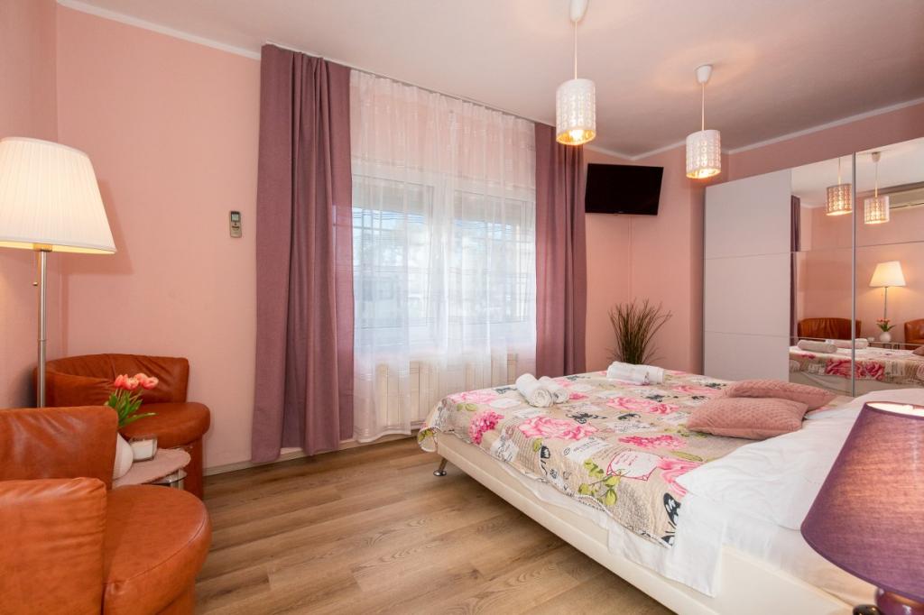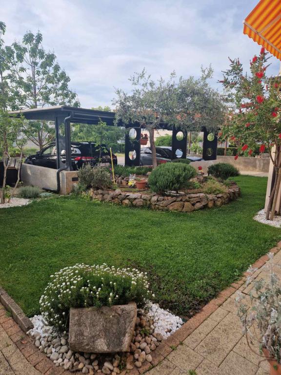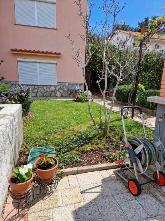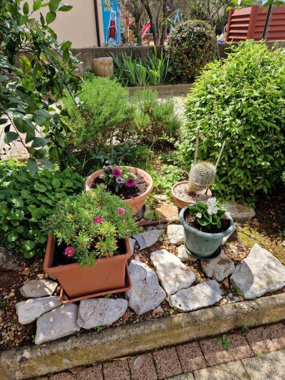 V krásné zahradě pro tři apartmány mají hosté k dispozici gril. Apartmány mají lehátka a kompletní sedací nábytek na terasách. V ceně ubytování je WIFI a klimatizace. Všechny apartmány mají pračky.