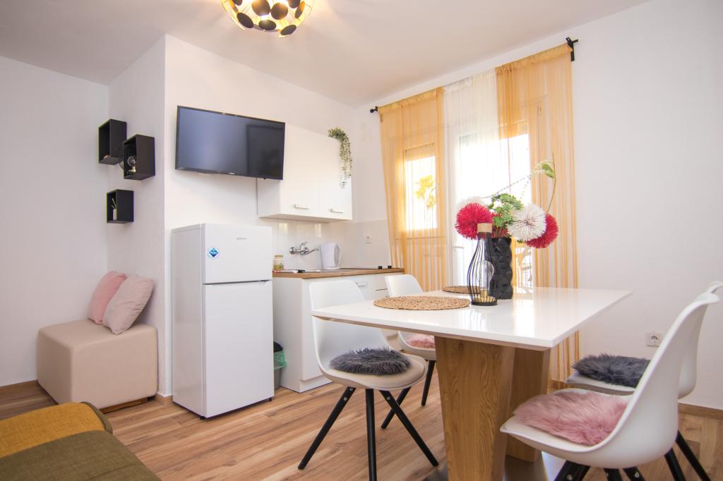 Tato krásná nemovitost se nachází na výborném místě, pouhých 400 metrů od pláže a asi 500 metrů od vstupu do Starého Města Krky, což z ní činí ideální volbu pro hosty, kteří si chtějí užít kombinaci moře, historie a městské atmosféry. Objekt nabízí fantastický vyhřívaný bazén s opalovací plochou, ideální pro relaxaci a příjemné dny. Některé jednotky nabízejí krásný výhled na moře a prostorné terasy, zatímco jiné mají balkony nebo se nacházejí přímo u bazénu, takže jsou ideální pro hosty, kteří chtějí být blízko sociálního vybavení. Všechny jednotky mají soukromé parkoviště, satelitní programy, bezplatný internet, rychlovarnou konvici a kávovar na filtrovanou kávu, což hostům zajišťuje pohodlný a praktický pobyt.