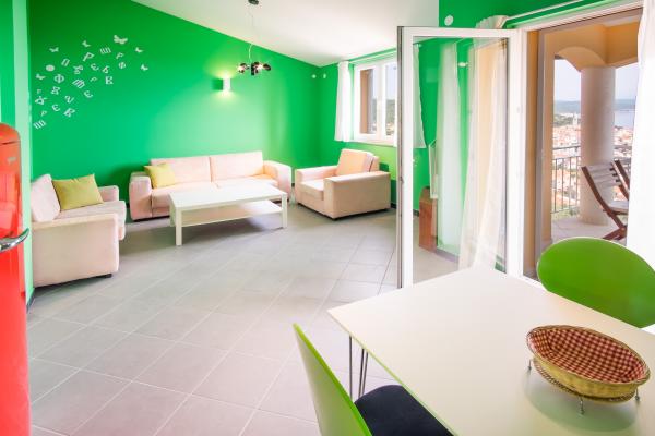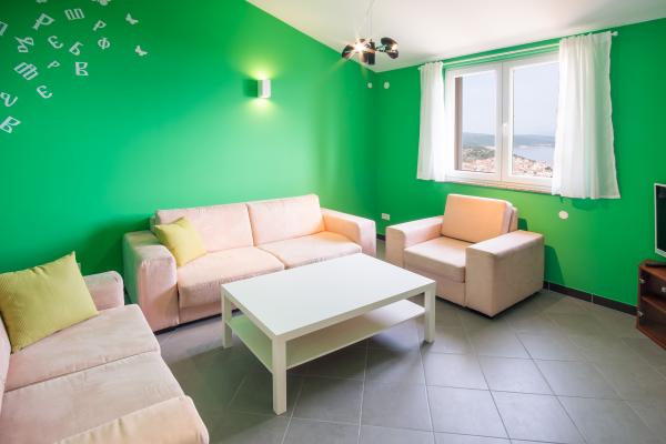 Byt se nachází v 1. patře, který se nachází v klidné atraktivní lokalitě, má krytou terasu s krásným výhledem na moře a staré město. Pouze 10 min. chůze do centra a pláže v blízkosti pro každého vkusu. My vám rádi pomohou vám radí, kam jít na výlet, večeři nebo jít ven. Těšíme se na Vaši návštěvu!