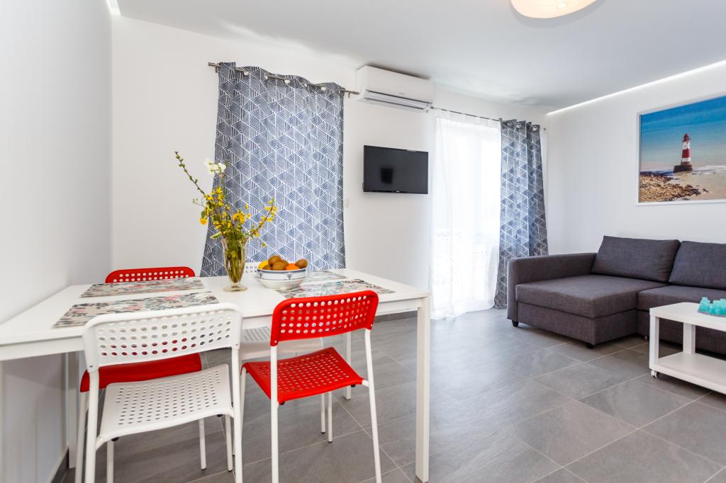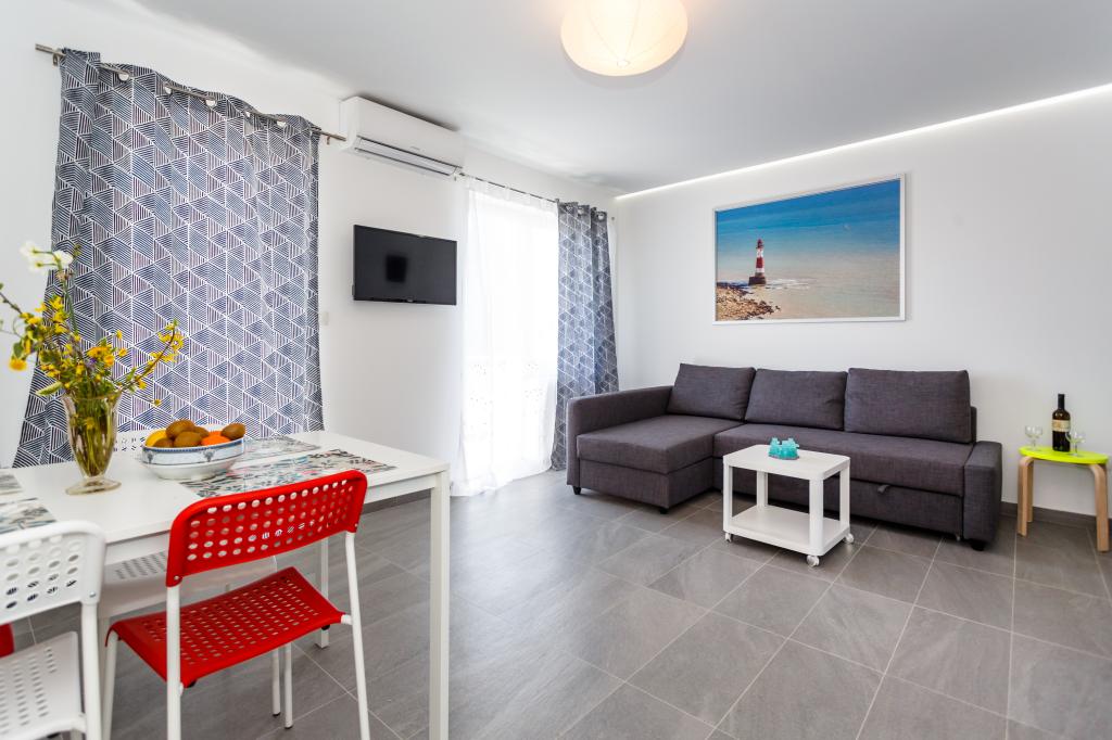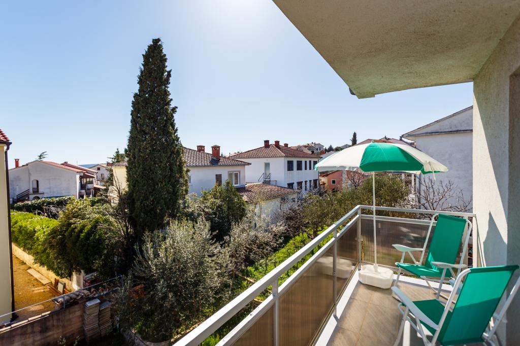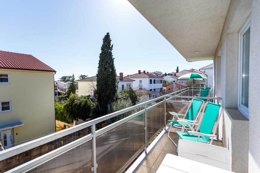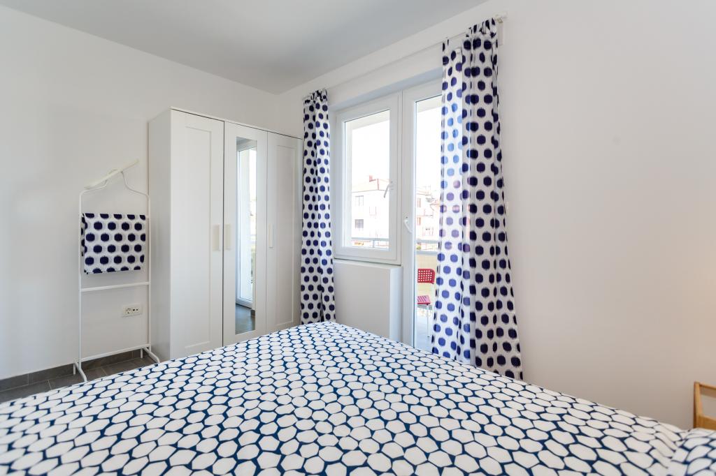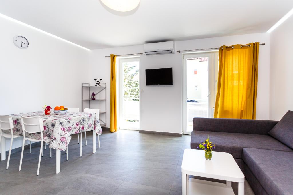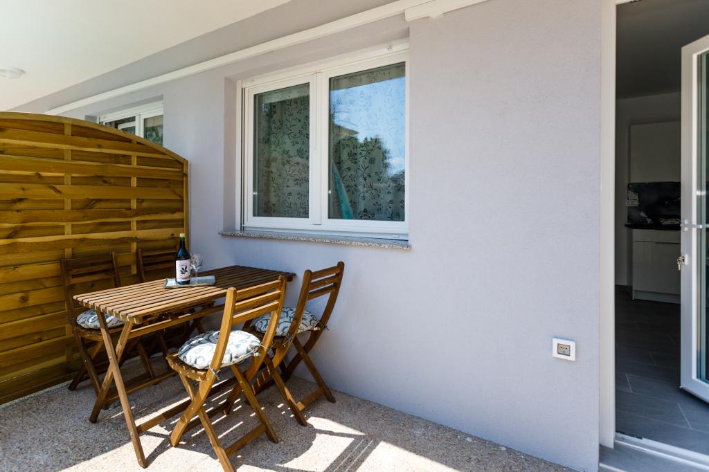 Pozdrav! :) Toto je náš zbrusu nový byt v blízkosti centra Krku (asi 5 minut chůze). Byt má jednu ložnici s manželskou postelí, obývací pokoj s pohovkou, kterou lze rozložit na dvoulůžko, kuchyň a koupelnu s potřebným příslušenstvím. Má také balkon, kde si můžete užívat slunce kdykoli během dne. Nabízíme bezplatné parkovací místo ve stínu, bezplatnou klimatizaci, smart TV s Netflixem, gril na zahradě u apartmánu a bezplatné WiFi.