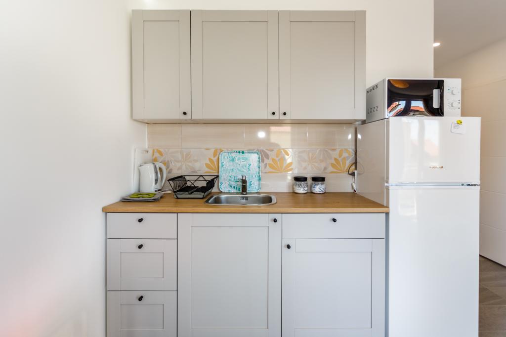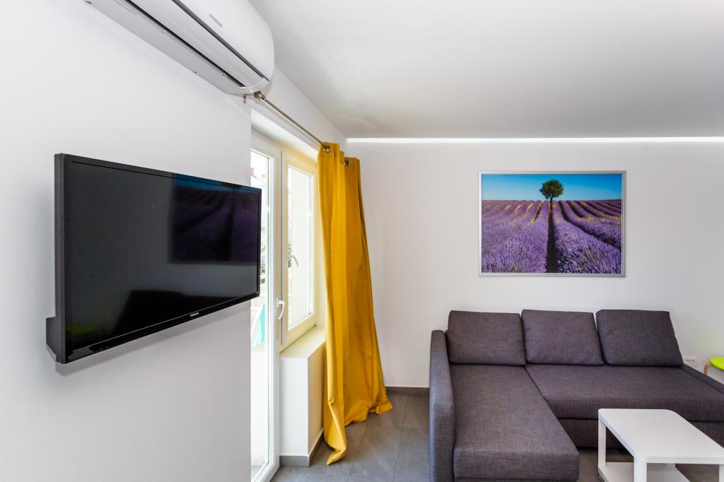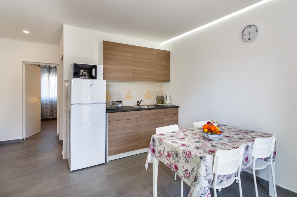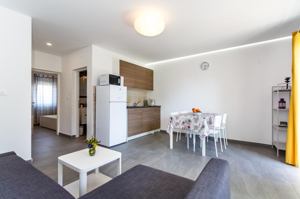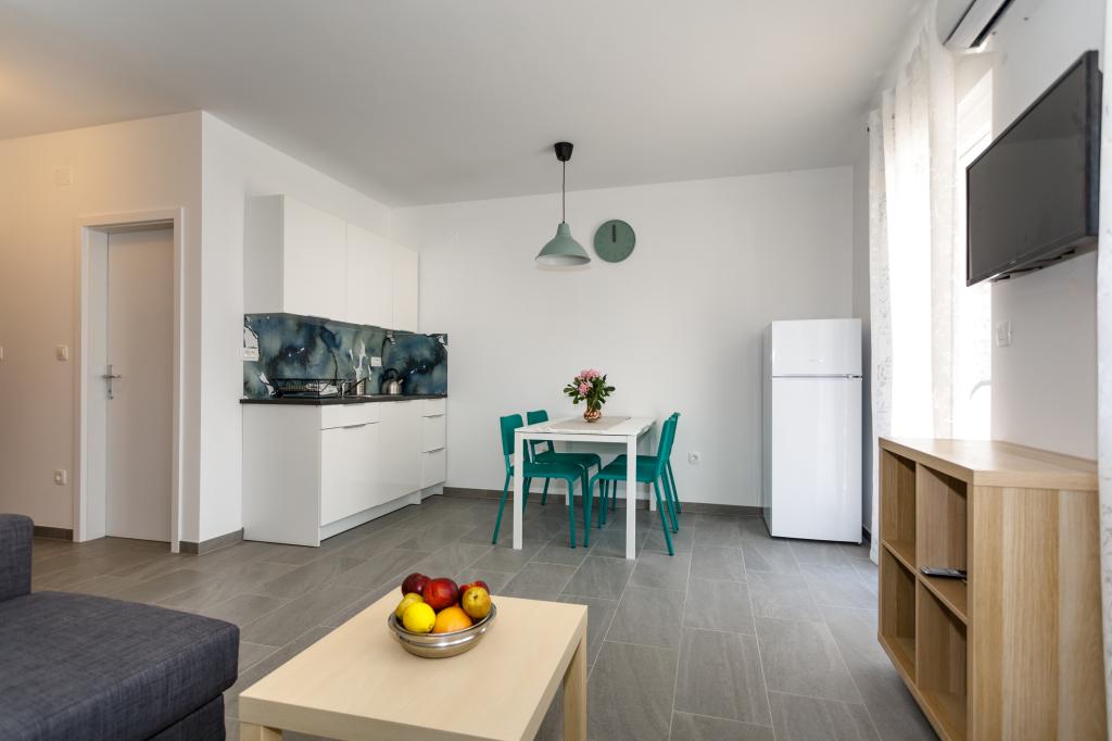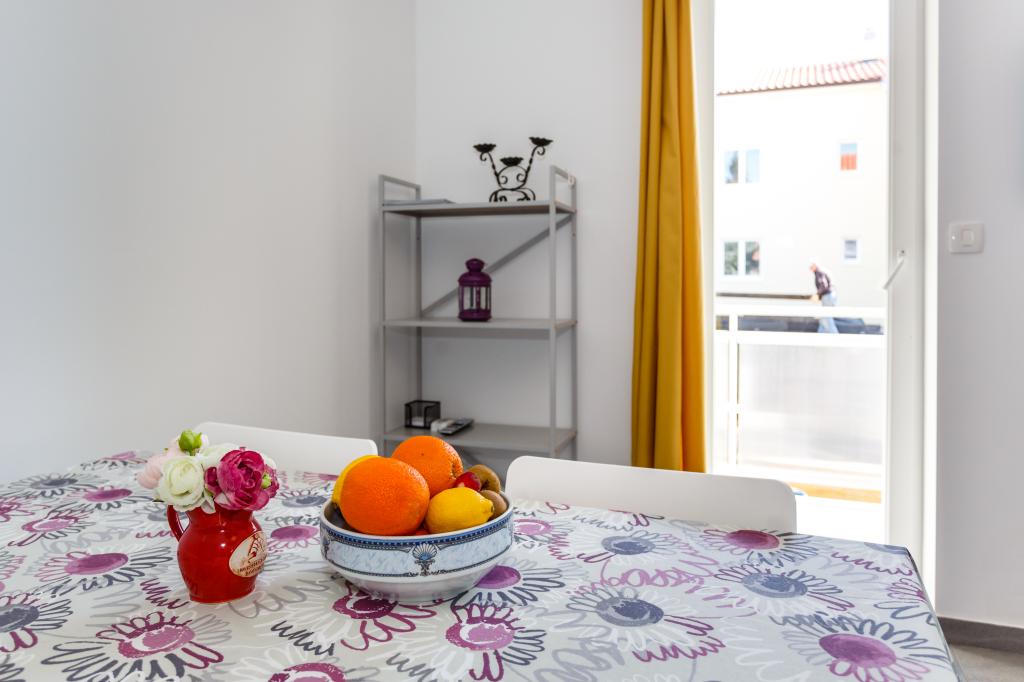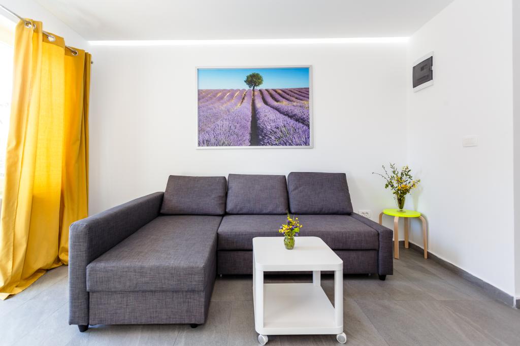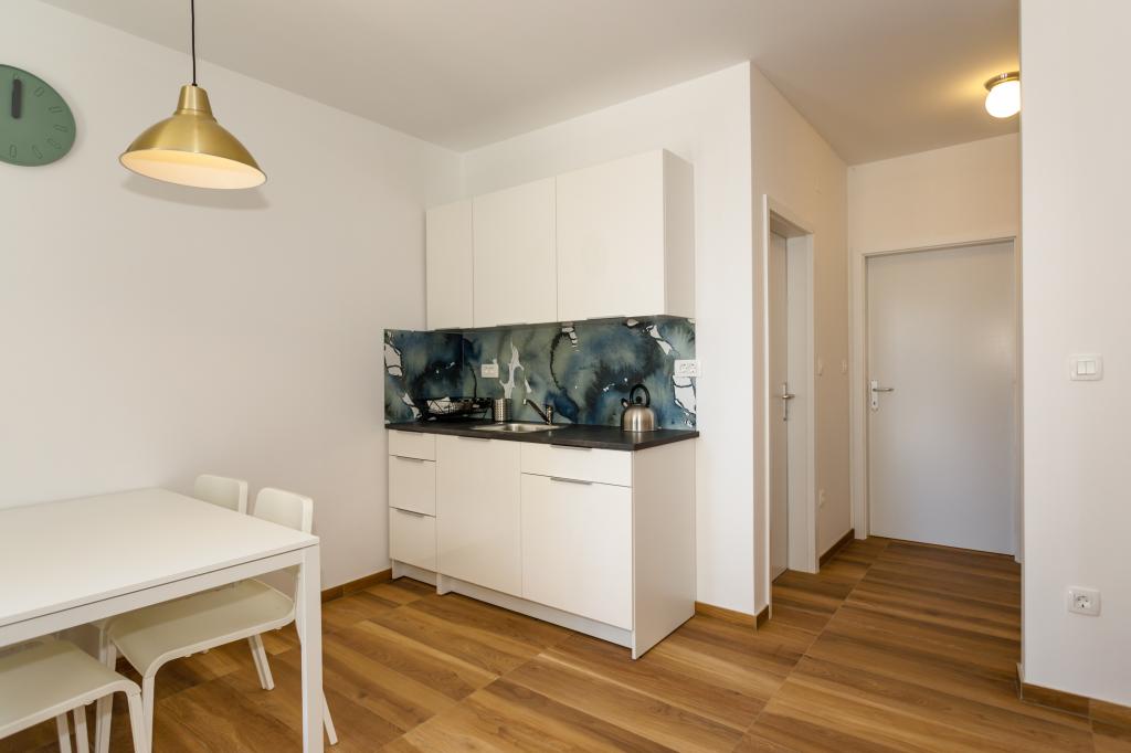 Pozdrav! :) Toto je náš zbrusu nový byt v blízkosti centra Krku (asi 5 minut chůze). Byt má jednu ložnici s manželskou postelí, obývací pokoj s pohovkou, kterou lze rozložit na dvoulůžko, kuchyň a koupelnu s potřebným příslušenstvím. Má také balkon, kde si můžete užívat slunce kdykoli během dne. Nabízíme bezplatné parkovací místo ve stínu, bezplatnou klimatizaci, smart TV s Netflixem, gril na zahradě u apartmánu a bezplatné WiFi.