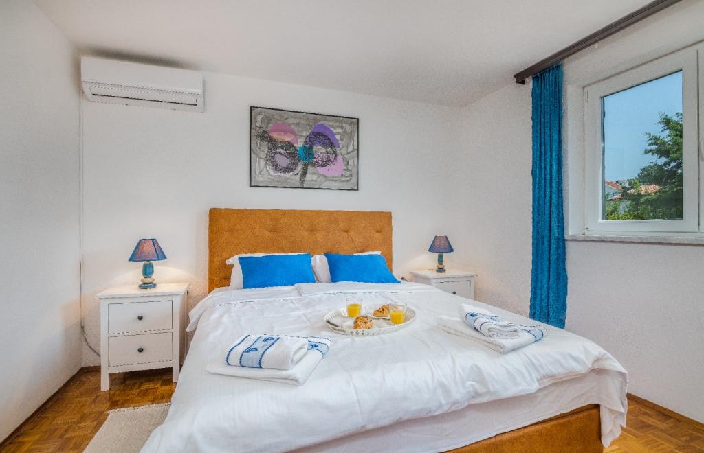 Apartmány Nada se nacházejí na atraktivním místě ve městě Krk, pouhých 100 metrů od moře a 10 minut chůze do centra města. Apartmány mají výhled na moře, jsou obklopeny zelení a prostorným dvorem. Pronajímáme 3 jednotky. Apartmán 1, kategorizovaný 4 hvězdičkami, o velikosti 55 m2, se skládá ze dvou samostatných ložnic, každá s balkonem a koupelnou s WC a sprchou, postele 160x200, samostatná kuchyň s obývacím pokojem. Apartmány 2 a 3 jsou 3hvězdičkové kategorie o velikosti 46 m2, mají jednu samostatnou ložnici s lůžkem 160x200 a větší obývací pokoj s lůžkem 160x200. Všechny apartmány jsou moderně zařízené a mají pračku, myčku, LED TV, troubu, mikrovlnnou troubu, toustovač, kávovar Nespresso... Všechny pokoje v apartmánu jsou klimatizované. V blízkosti apartmánu se nacházejí oblíbené pláže Dražica a Punta Di Galetto. Historické památky jsou 500 metrů od apartmánu, např. Pevnost Krk. Nejbližší letiště je letiště Rijeka, 25 km od ubytování.