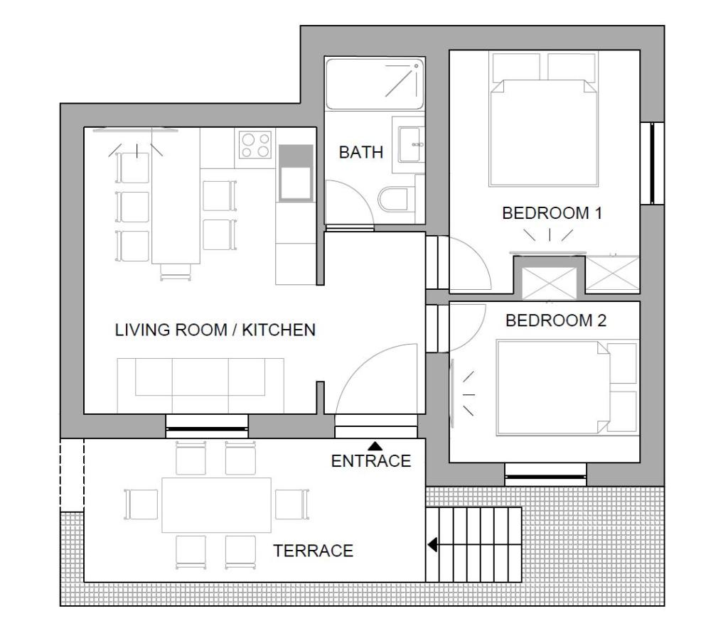 Apartmán pro čtyři osoby se dvěma přistýlkami (42 m2)