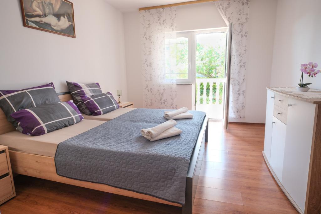 Vítejte v nabídce Apartmány Ruza - Krk. Vítá vás Ruža a Filip. Nabízíme dva zařízené apartmány ve městě Krk, v blízkosti starého města a moře. Apartmán 1 se skládá ze dvou ložnic, přijímacího pokoje, koupelny, kuchyně a velké terasy. Gauč v přijímacím pokoji se vysouvá, aby na něm mohly spát dvě děti (velikost dětí základní školy). Apartmán 2 se skládá z jedné ložnice, přijímacího pokoje, koupelny, kuchyně a velké terasy. Gauč v přijímacím pokoji se vysouvá, aby na něm mohly spát dvě děti (velikost dětí základní školy). Pro oba byty jsou zajištěna parkovací stání pro auta u domu. Zařízení se nachází cca. 7 minut chůze k moři / pláže Ježevac a Porporela. A 10 minut do starého města Krk (centrum) s restauracemi, pláží, nábřežím, lékárnou, bankami atd.
