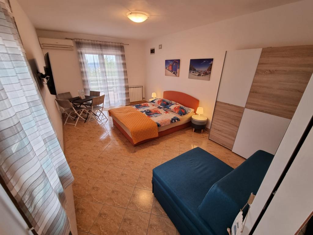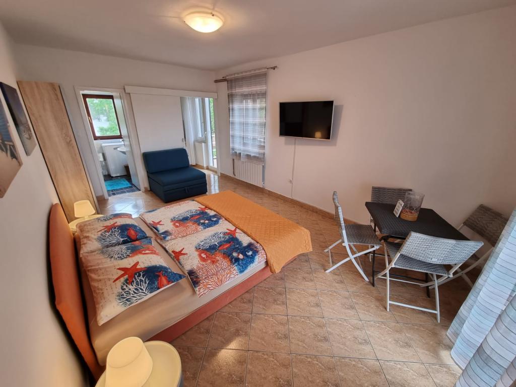 Krásné apartmány v blízkosti moře a pláže v atraktivní části města Krk s velkými terasami, které nabízejí jedinečný výhled na moře a panorama na ostrovy Plavnik, Cres, Lošinj a Rab. Apartmán Ida (2 2 osoby) a apartmán Miha (2 1persone) mají veškerý komfort, klimatizační zařízení, pračky, mikrovlnné trouby, ústřední topení, internet, TV se satelitním příjmem. Apartmány jsou umístěny vedle sebe, a otevření průchodu na terase může být použit komunitou pro rodiny s více dětmi nebo přáteli. Hosté mohou také využít středomořské zahradě s grilem.