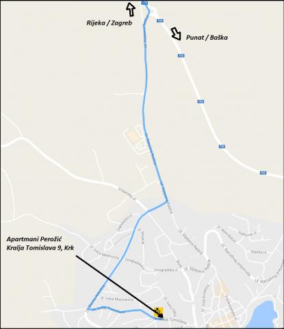 Dům se nachází v samém centru města Krk. Každý apartmán má vlastní parkovací místo. V domě je gril a společenský stůl, který je určen pro všechny byty. Domácí mazlíčci jsou povoleni po předchozí dohodě s majitelem.