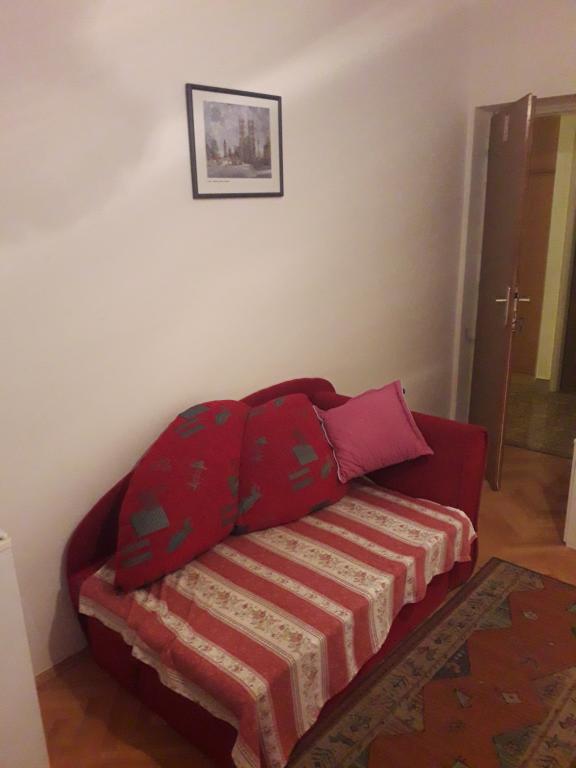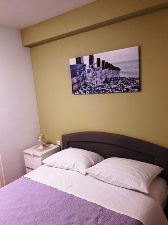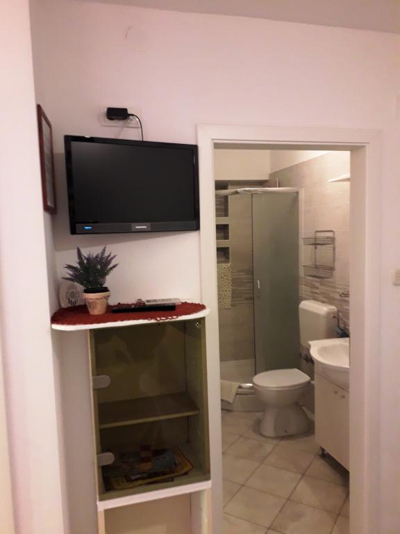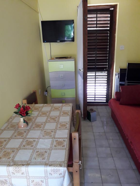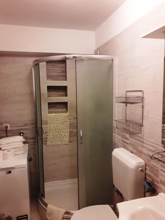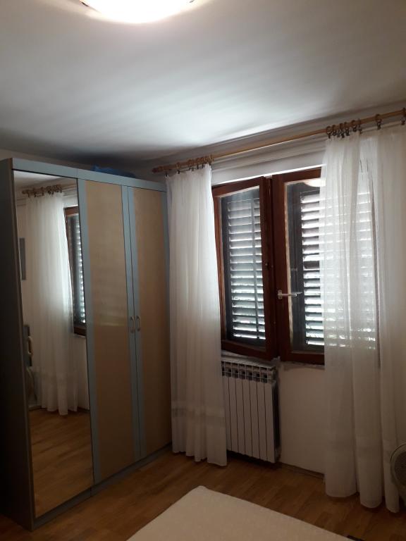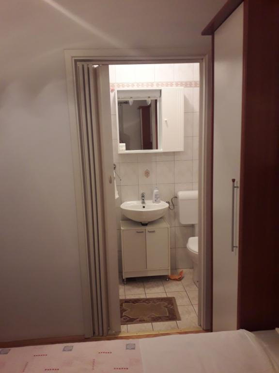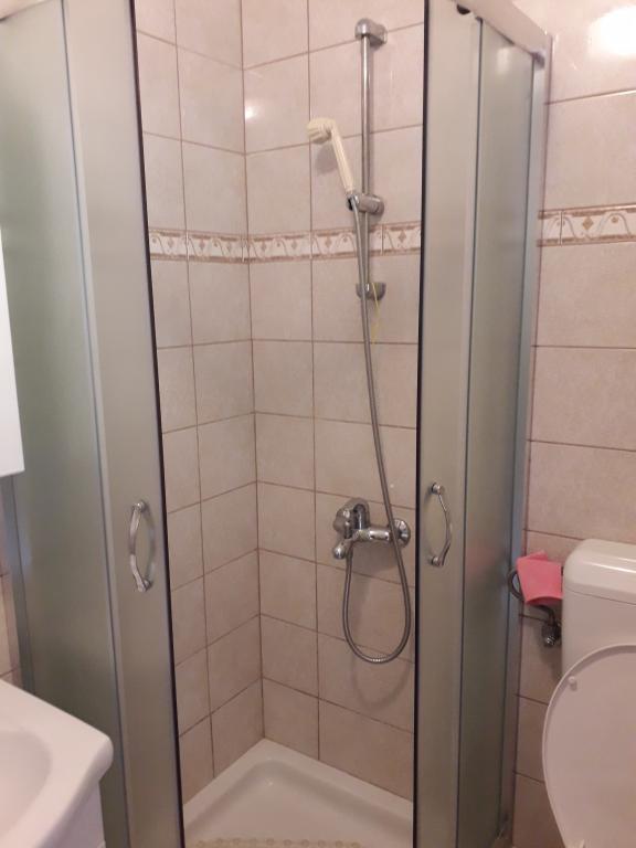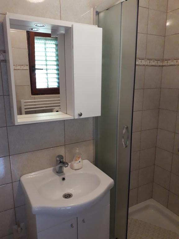 Pokoj s vlastní koupelnou se nachází v 1. patře domu. V pokoji je TV, wifi, koupelna se sprchovým koutem, lednice, manželská postel přistýlka - vhodné pro děti, terasa se sedacím nábytkem, klimatizace