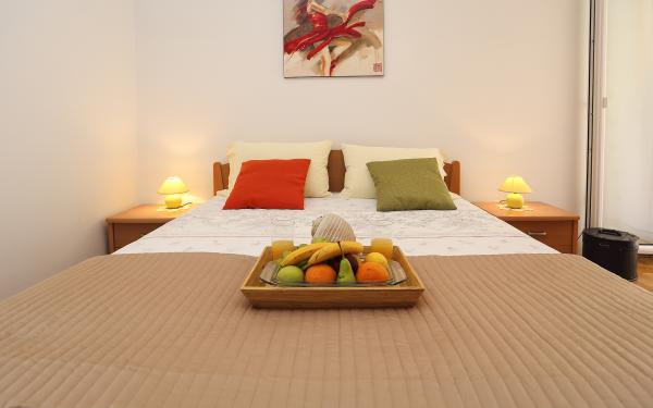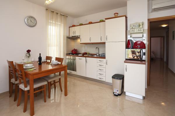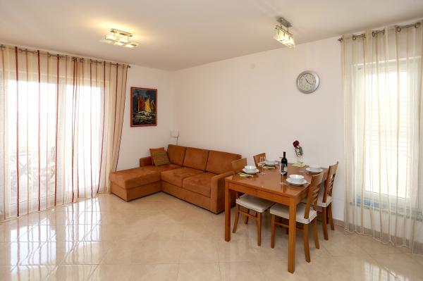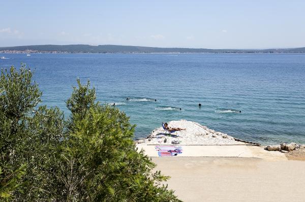 Plně vybavený byt v klidné lokalitě s výhledem na město přístav. Nachází se u moře. V areálu se nachází 10min. chůze od centra města a leží přímo na pláži. Byt se nachází v blízkosti námořní průchod Ždrelac mezi ostrovy Ugljan a Pašman (dveře Kornati) cca 15min. pěšky na most, který spojuje ostrovy stejného jména. V blízkosti se nachází votivní kostel Panny Marie Sněžné, jejichž Fiesta, populární držen 05. srpna V centru 15 min. chodit existují zařízení, jako je pošta, přístav, sportovní zařízení (sálový fotbal, házenou, basketbal), potápění, stejně jako několik restaurací a taveren, kde si můžete vychutnat menu