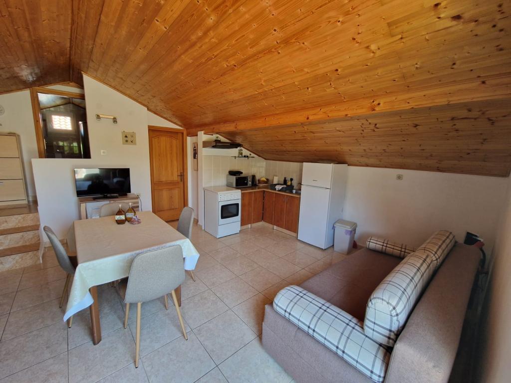 Studio Dario o velikosti 46 m2 se nachází na vynikajícím místě v klidné zátoce Gnjojišće v Kukljici, pouhých 20 metrů od moře, pláže a promenády. První řada k moři. Byt je vybaven pro ubytování 4 osob. Terasa apartmánu ve druhém patře nabízí krásný výhled na velkou zahradu, moře, pláž a Zadar. Ubytování v apartmánu je mimořádně vhodné pro rodiče a malé děti, milovníky přírody a cyklisty. Parkování aut se nachází v areálu zahrady, zabezpečené posuvnými dveřmi na dálkové ovládání. Použití auta není nutné, protože vše lze vyřídit pěšky, jako je nákup potravin v obchodě, návštěva kaváren a restaurací nebo prostě večerní procházka. Byt je kompletně zařízen a vybaven spotřebiči, obsahuje ložnici s manželskou postelí, obývací pokoj s kuchyní a koupelnu s WC a sprchovým koutem. V apartmánu je velká přistýlka pro dvě osoby a pohovka. Možnost využití venkovního grilu po dohodě s hostitelem. Při příjezdu obdrží hosté drink na uvítanou.