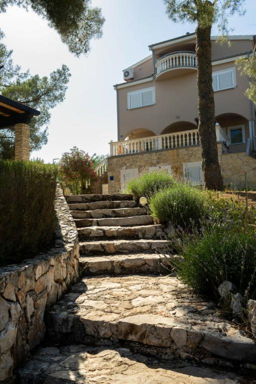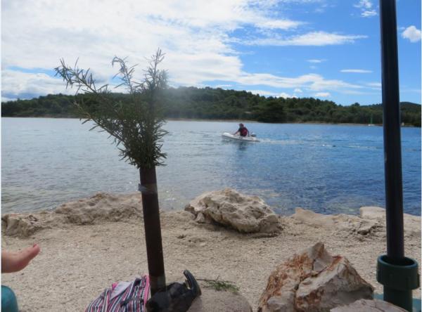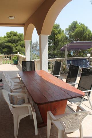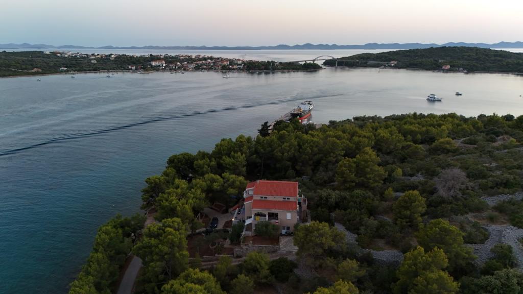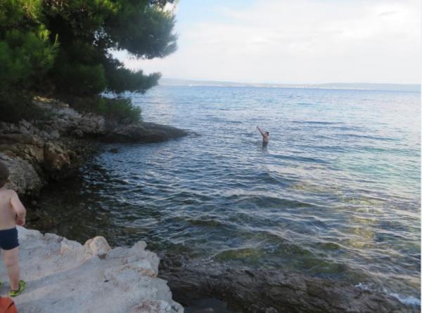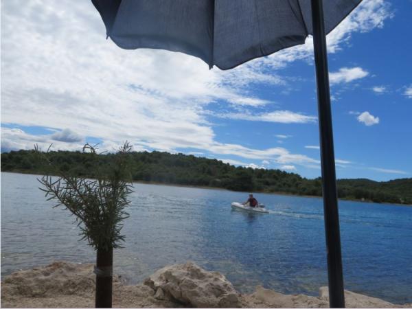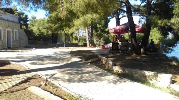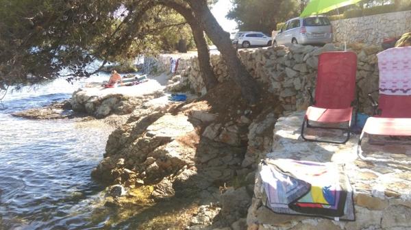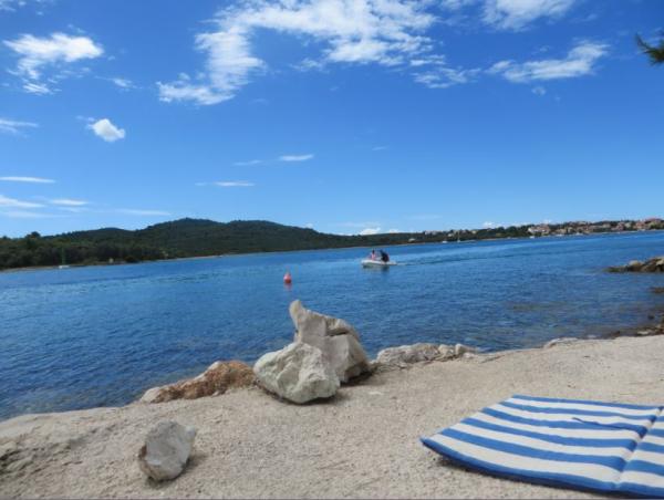 Okolí domu krásné, na půjčení lehátka, plavací kruhy. Kolem domu posezení, závěsné houpačky, ubytování hned u moře. Ale dům se nachází v průplavu, kudy projede denně snad 1000 lodí, jezdí blízko, takže nemůžete nikam si zaplavat, co víc, stále od rána do večera od lodí velké vlny, moře rozvíření a studené, kousek dál za kostelíkem je kamínková pláž, lepší vstup do moře, ale neuvěřitelný nepořádek. Ubytování odpovídá fotkám, ale nikde není psáno, že máte společnou terasu s dalšími lidmi, se kterými se hledíte do talířků.