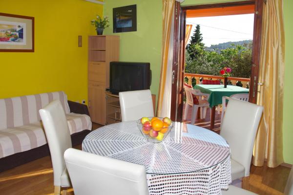 Apartmány se nacházejí v klidné části Kukljica, ideální pro klidnou a klidnou dovolenou a přitom jen minutu chůze od moře. Nachází se na konci Zelena Punta, takže za deset minut chůze lesem se dostanete na hlavní pláže v Zelené Puntě. Apartmány jsou velmi prostorné s velkou terasou, dobře vybavené, velmi dobré wifi se silným signálem, takže na jejich zařízeních může být celá rodina.