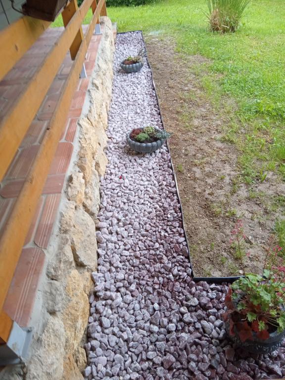 Rekreační dům se nachází na malém kopci s krásným výhledem na údolí Sutlan a Slovinsko. Tento montovaný dům obsahuje 2 ložnice, jednu koupelnu se sprchovým koutem a podlahovým vytápěním, velký obývací pokoj s TV a přístupem k MAX TV a WIFI, velkou kuchyň s kuchyňským vybavením a myčkou. V obývacím pokoji je velký hliněný krb na dřevo, v domě je ústřední plynové topení. K domu přiléhá krytá venkovní terasa, kde je velký rožeň/gril a chlebová pec. Terasa pojme až 20 osob. Za domem je místo určené pro parkování více vozidel.