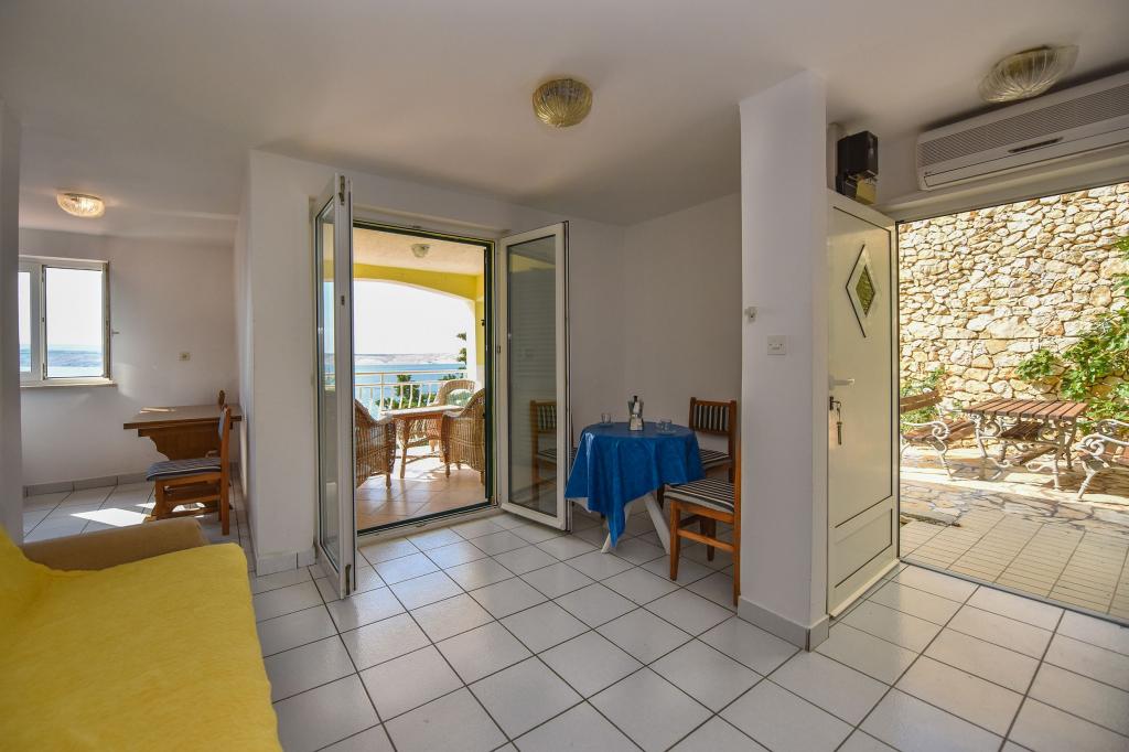 Apartmán s nádherným výhledem na moře, který je jen 100 metrů od hotelu. Tato nemovitost je 5 minut chůze od nejbližší písečné pláže. Má soukromé parkovací místo 70 metrů od bytu. Nejbližší obchody a restaurace jsou vzdálené 150 metrů. V bezprostřední blízkosti je známá pláž Zrce. V okolí se nachází velké množství písečných pláží.