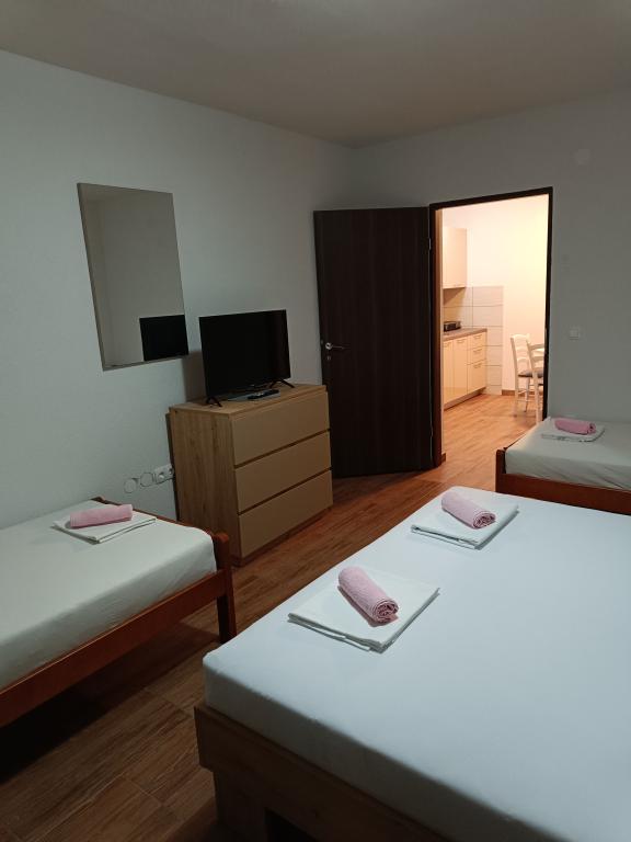 Leonard Apartments Nacházíme se v malém a klidném městečku Kustići Nabízíme nové a plně vybavené apartmány s parkováním. Každý apartmán má klimatizaci, Wi-Fi, ložní prádlo, TV, plně vybavenou kuchyň a terasu. Pláž je vzdálena 20 metrů a v oblasti apartmánů jsou obchody, restaurace a pekárna! Máme také kotviště lodí 20 metrů od bytu!