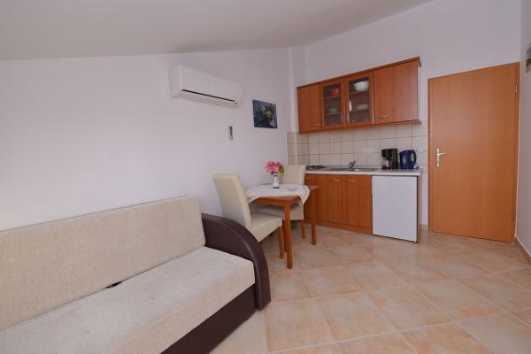 Byli jsme tam a byli jsme trochu zklamaní. Nedostali jsme apartmán, který propagují online. Pozor! Online prodávají jen 3 apartmány, ale ve skutečnosti jich je nejméně 9. To je první věc, která nám vadila. A ne všichni hosté jsou si rovni - někteří se "ukotví" na určitém místě (např. pod "baldachýnem") a myslí si, že všechno je jejich. Říkalo se, že lehátka tam jsou - ano, pokud si je vyberete. Mnoho je rozbitých a "rezervovaných". Moc se nám nelíbí tato soutěž, kdo si dřív rozloží ručník, a pak půl dne nikdo není. Ještě jednou zdůrazňuji, že apartmánů je tu hodně a nedostali jsme to, co jsme viděli na fotkách. Měli jsme bydlet v apartmánu 4+2, ale není zde možnost ubytování pro 6 osob (musíte posunout stůl v kuchyni, pokud chtějí sedět 4 lidé, tak kam byste jich dali 6?). Terasa je malá, slunečník nám půjčili hosté z jiného apartmánu. Zničené moskytiéry a žaluzie, závěs ve sprše. Zkrátka klamání hostů! Rezervovali jsme si to, protože jsme si opravdu mysleli, že jsou tam jen 3 apartmány a že majitelé mají zbytek pro sebe. Jedinou výhodou je, že pláž je opravdu blízko (před domem) a že je to klidná vesnice (ale je přes ni vidět Zrče, takže večer nemůžete mít otevřená okna, protože je všechno slyšet). Také se nám tady nelíbí moře - příliš mělká voda a bahno a tráva. Ani se tu nedá normálně plavat a když chodíte po vodě, všechno to bahno se zvedá a je to jako v jezeře.