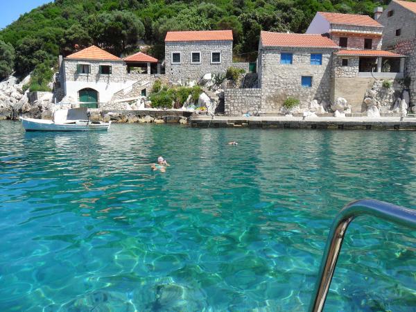 Apartmány Simic se nachází v klidné části města Bay Harbor na 10 metrů od moře. Za byt 2 plus 1 je k dispozici terasa v zahradě a samostatný vstup po schodech do moře. Na 5 metrů od moře je velká terasa, k dispozici pro oba apartmány. Je vybavena lehátky, stoly a židlemi, slunečníky a venkovní sprchou. K dispozici je také venkovní gril, kotviště a sdílené parkování na 15 metrů od domu.