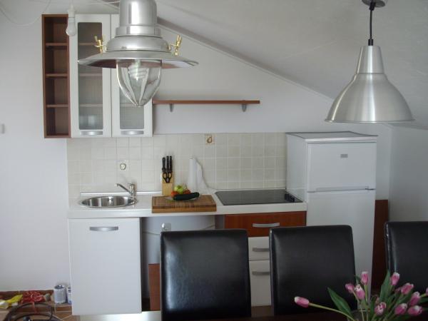 Velký, nově zrekonstruovaný byt v prvním patře přímo u moře. Dvě ložnice, kuchyň, jídelna a obývací pokoj. Koupelna a WC, samostatné WC, dvě terasy, a to jak s výhledem na moře. Písečné pláže, ideální pro rodinnou dovolenou, a přesto v blízkosti Zadar a všech možných zařízení. Velký záliv s konstantní vítr na windsurfing. Blízkost Paklenica. Ideální pro velké rodiny nebo dva menší.