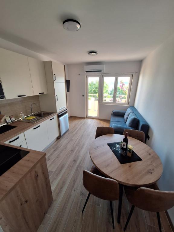 Rodinný dům s nově zrekonstruovaným apartmánem (A2+1). Terasa s výhledem na moře. Prostorná zahrada, parkování, venkovní sprcha. Klidná lokalita, blízko písečné pláže a dětského hřiště. Nedaleko nové stezky pro horská kola a běžecké stezky přes olivové háje. Ložnice s manželskou postelí a otevřeným obývacím pokojem s možností přistýlky. TV v ložnici a obývacím pokoji. Myčka nádobí a pračka. Koupelna se sprchovým koutem. Vše NOVÉ!