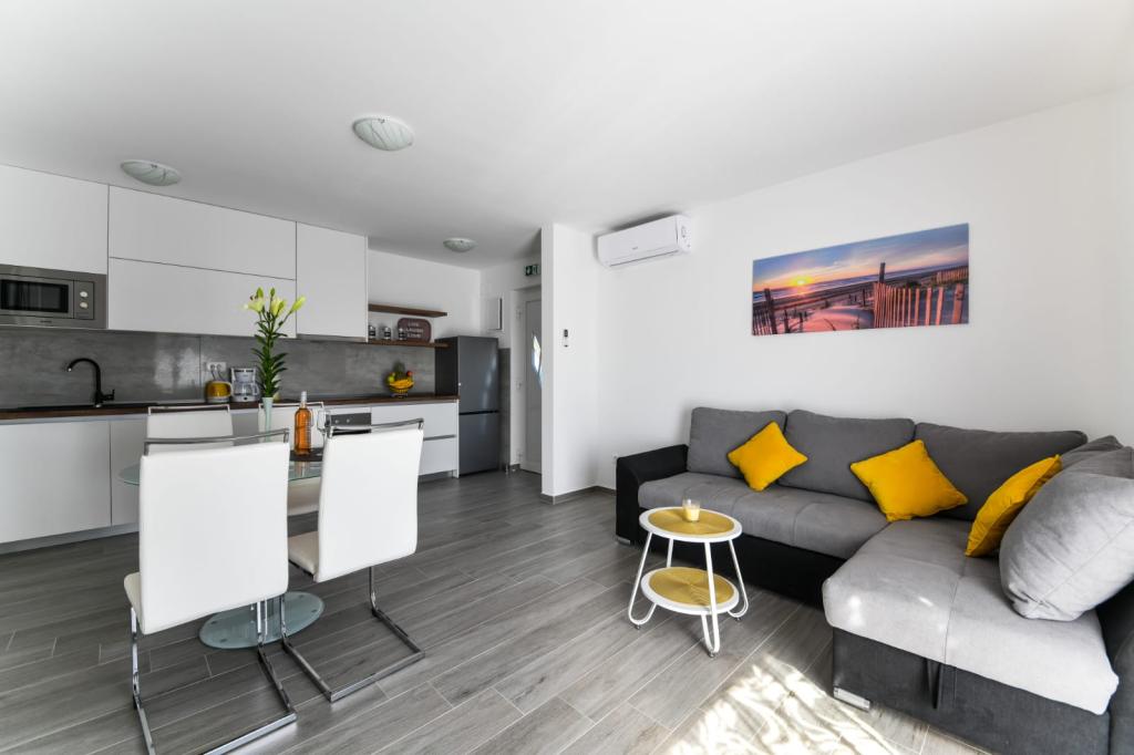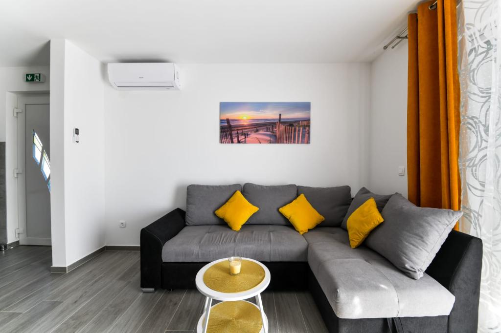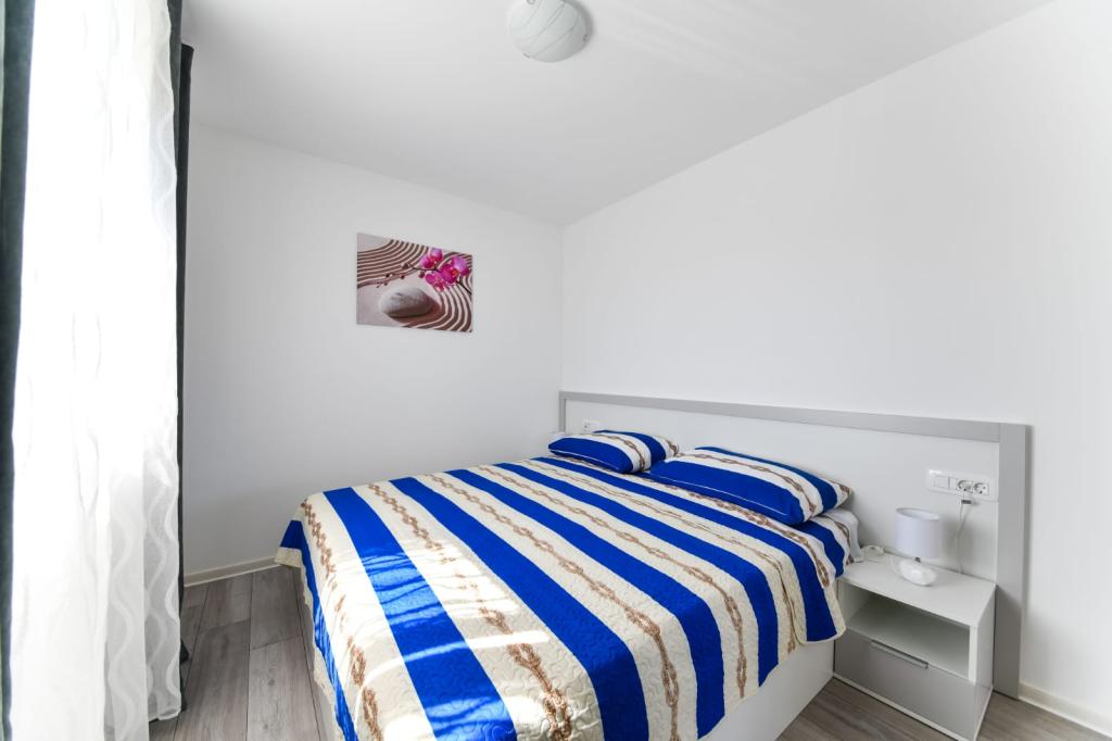 Jednopokojový apartmán 2+2 postavený v roce 2020. Moderní, plně vybavený apartmán v klidné části města, poskytující klid a pohodu. Je 300 m od moře, 700 m od restaurací a kaváren a 800 m od obchodů. K dispozici gril, terasa a balkon s výhledem na moře. Zajištěné parkování. Pro děti je k dispozici mobilní postýlka a dětská židlička. Snadná dostupnost autem do Národního parku Paklenica, na ostrov Pag, do Ninu, Vrsi, Zadaru, 24 km od letiště Zemunik.