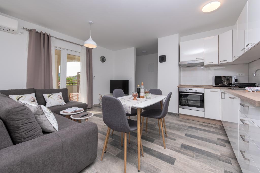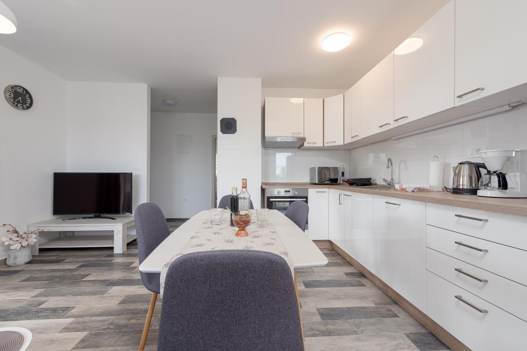 Apartmány se nacházejí v klidném městečku Ljubač, 16 km od Zadaru. Jsou 150 m od první pláže. Další pláže jsou také poblíž. Byt je 2+2, t.j. 4 osoby - pokoj s manželskou postelí plus přistýlka - rozkládací pohovka. V případě potřeby je k dispozici i dětská postýlka. Plocha bytu je 46m2 plus velká terasa. Apartmány jsou plně vybaveny: klimatizace, SAT TV, WIFI, myčka, pračka, toustovač, kávovar, mikrovlnná trouba atd.. Ochrana proti komárům na všech oknech. V přední části je bazén 8x4m s hloubkou 1,5m. Parkovací místo k dispozici. Pobytová taxa v ceně!