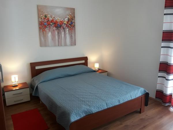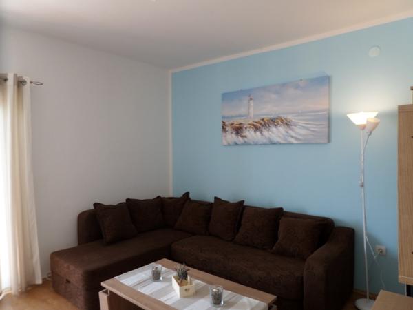 Pobytová taxa je v ceně. Doklad o potvrzení rezervace při rezervaciNabízíme našim hostům gril, terasa se stoly ve stínu vinné révy, venkovní sprchový kout, WC a využít letní kuchyň. Apartmány mají balkon s výhledem na moře.
