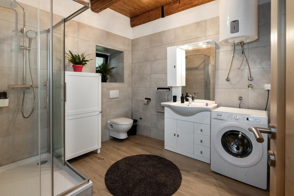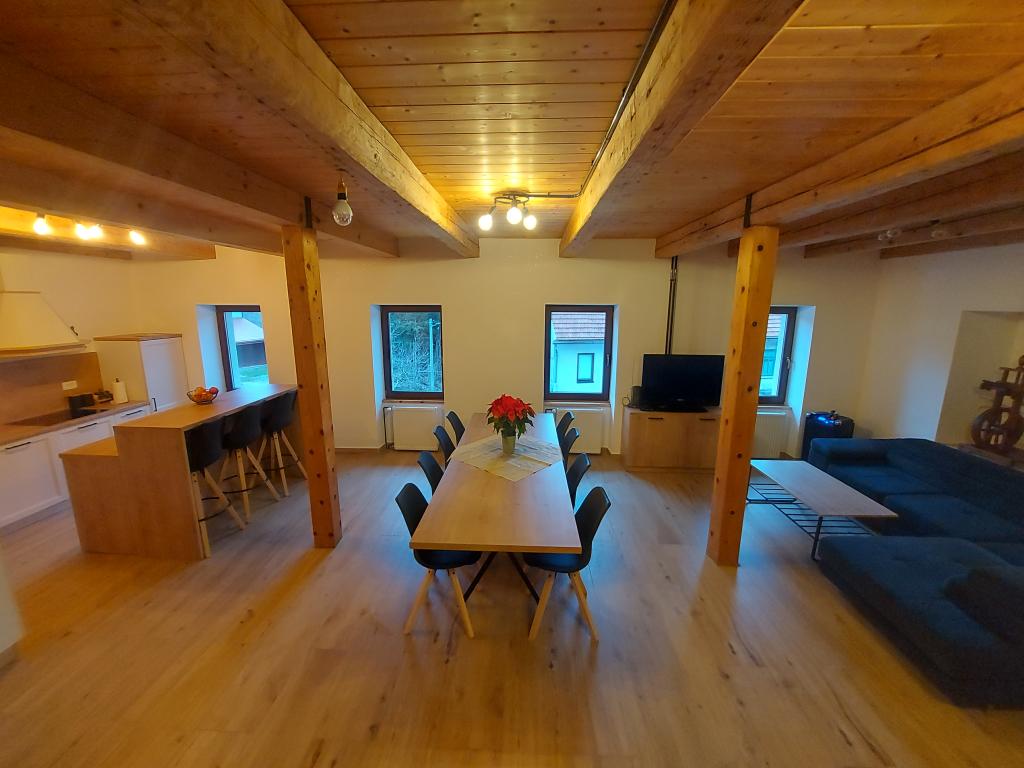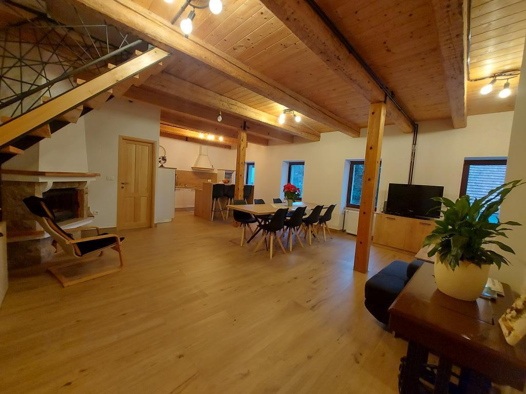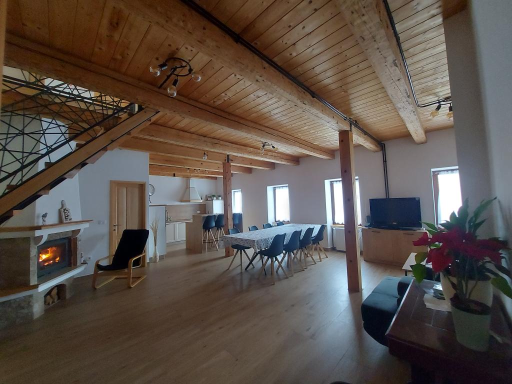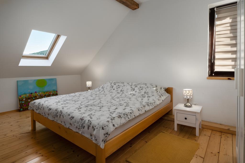Byt se nachází v malém městečku Lokve v Gorski Kotro. Poblíž protéká říčka Lokvarka a také velké jezero Lokvar, oblíbené místo pro relaxaci a aktivní dovolenou. V obci se nachází také jeskyně Lokvarka, která vás nadchne svým vzhledem, je dlouhá 1179 metrů a hluboká 275 m. V Lokvě je také lesopark Golubinjak, velká zelená oáza obklopená krásnou přírodou a vysokými jehličnany. a jeskynní cesta. Lokva je 13 km od NP Risnjak, 8 km od Delnice, 43 km od Rijeky, 44 kn od Crikvenice, 125 km od Zadgebu. Byt je 222 m2, rozkládá se v prvním patře a podkroví, má 3 ložnice, místo k odpočinku se 2 přistýlkami, 2 koupelny, kuchyň, obývací pokoj, krb na dřevo, malou terasu a parkovací místo. V bytě je trouba, lednice, myčka, pračka, ústřední topení, krb na dřevo, TV, internet, karaoke reproduktor.