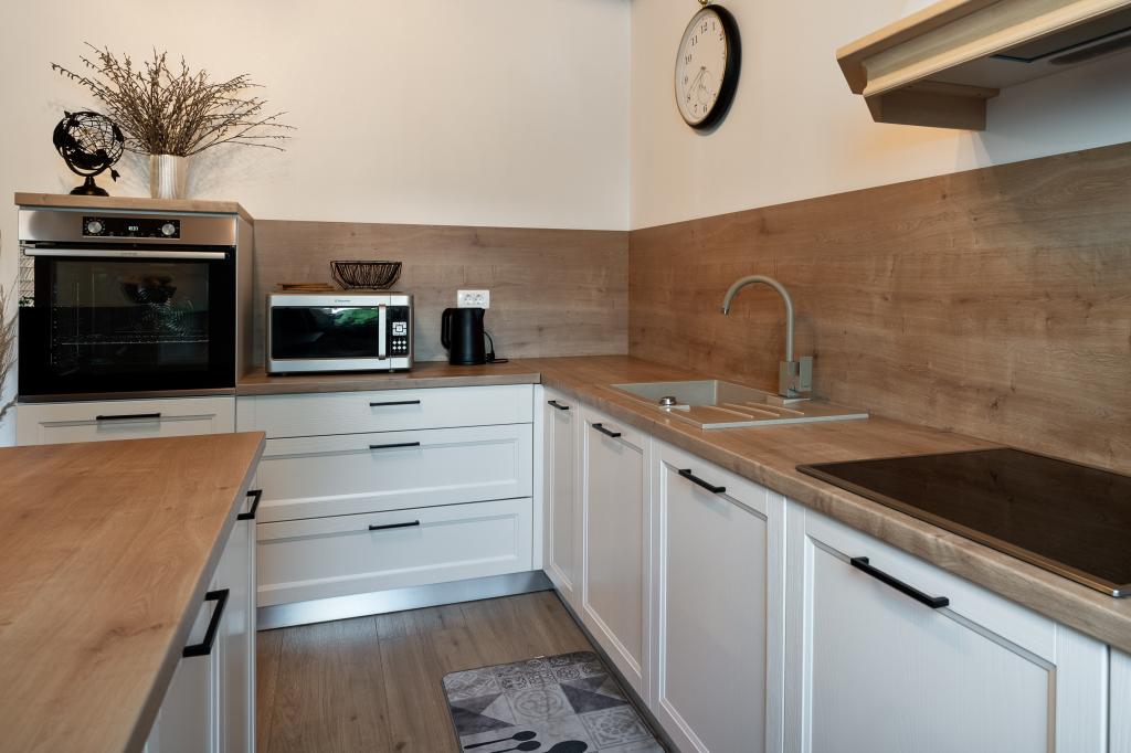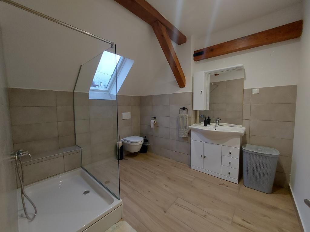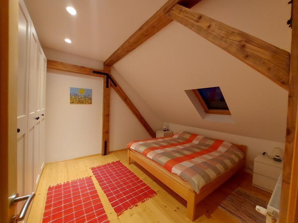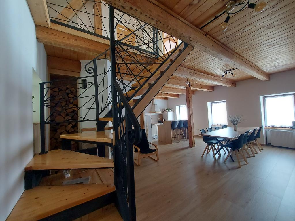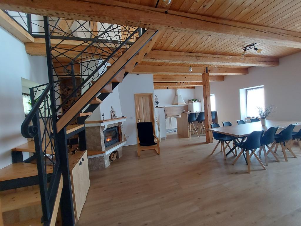 Byt se nachází v malém městečku Lokve v Gorski Kotro. Poblíž protéká říčka Lokvarka a také velké jezero Lokvar, oblíbené místo pro relaxaci a aktivní dovolenou. V obci se nachází také jeskyně Lokvarka, která vás nadchne svým vzhledem, je dlouhá 1179 metrů a hluboká 275 m. V Lokvě je také lesopark Golubinjak, velká zelená oáza obklopená krásnou přírodou a vysokými jehličnany. a jeskynní cesta. Lokva je 13 km od NP Risnjak, 8 km od Delnice, 43 km od Rijeky, 44 kn od Crikvenice, 125 km od Zadgebu. Byt je 222 m2, rozkládá se v prvním patře a podkroví, má 3 ložnice, místo k odpočinku se 2 přistýlkami, 2 koupelny, kuchyň, obývací pokoj, krb na dřevo, malou terasu a parkovací místo. V bytě je trouba, lednice, myčka, pračka, ústřední topení, krb na dřevo, TV, internet, karaoke reproduktor.