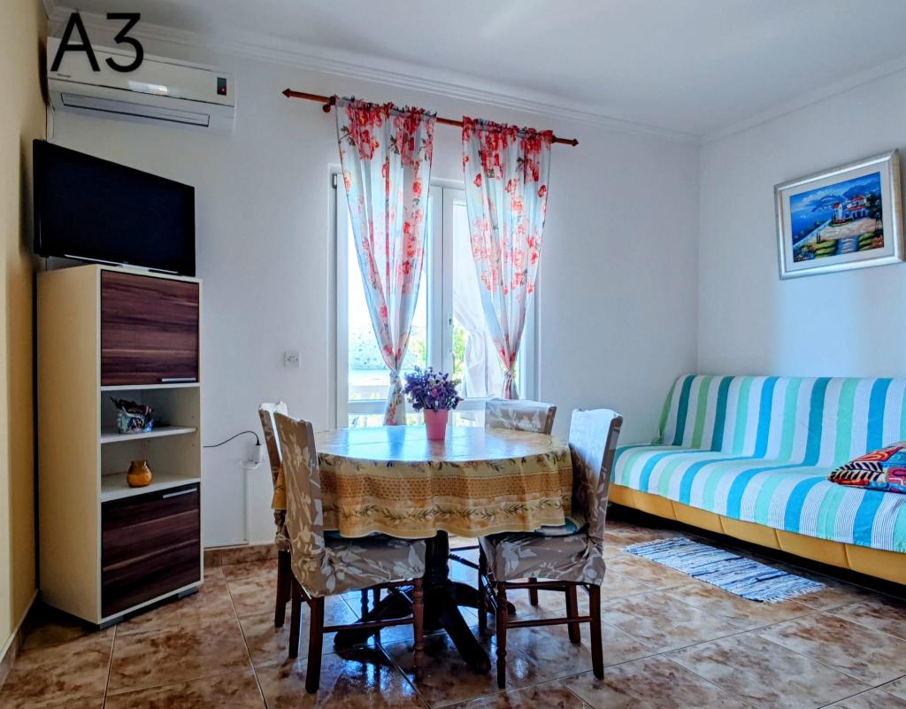 Vítejte na Lopar !! Pokud upřednostňujete tiché, klidné a relaxační dovolenou s mírným klimatem, teplým mořem a Středomoří vůní v preseason, nebo patří k těm, kteří dávají přednost odpočinku na podzim, jste na správném místě! Zde jsou k dispozici na našich apartmánech pro 2-5 osob, plně vybavené a klimatizované, terasy s výhledem na moře ... zahrada naplněný s rostlinami a vinnou révou, lehátky ve stínu, houpačky pro děti, grilování ... Více než 20 zátoky s písečnými nebo kamenité pláže, četné procházky a projížďky na kole a dalších přírodních a kulturních krás Lopar a ostrov Rab stojí za prozkoumání! Nejbližší pláž CEM vám jen 5 minut chůze. Mezi 50 a 1000 m jsou různé restaurace, kavárny, banka, pošta, sportovní centrum a různé obchody. Zveme vás, abyste se seznámili s našimi byty na následujících stránkách, a pokud jste nebyli na ostrově a nevíte, Rab, nenechte si ujít takové prostředí si můžete odpočinout, pokud si vybrat jednu z nich. Pak nás kontaktovat a požádat všechny, které zde nebyla zodpovězena, nebo jen provést rezervaci. Budeme rádi vstříc. Rodina Ivce Lino