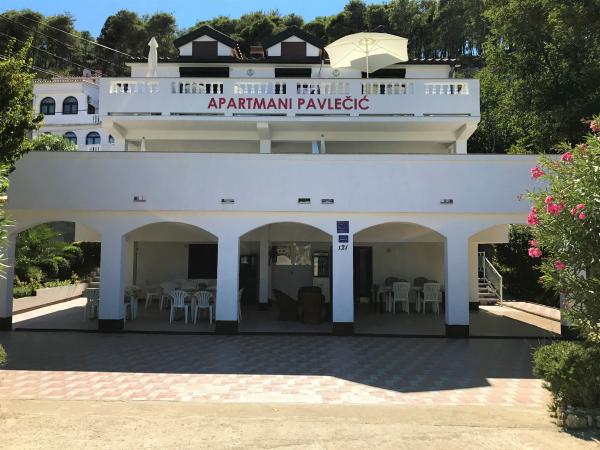 Apartmány Pavlečić se nacházejí v Loparu na ostrově Rab. Apartmány se skládají ze 6 samostatných apartmánů. 4 apartmány jsou pro 3 osoby a 2 apartmány jsou pro 4 osoby. Každý apartmán má samostatný vchod, kuchyň, koupelnu, WC-sprchový kout, 1 nebo 2 ložnice, TV se satelitním příjmem, terasu se stolem a židlemi. V přízemí je velká terasa se stoly a židlemi a grilem, který mohou využívat všichni hosté. Vzdálenost od pláže je pouhých 20 m. Pláž je díky mělkému moři a písečné pláži ideální pro malé děti. Obchody, restaurace, pošta jsou do 400m.