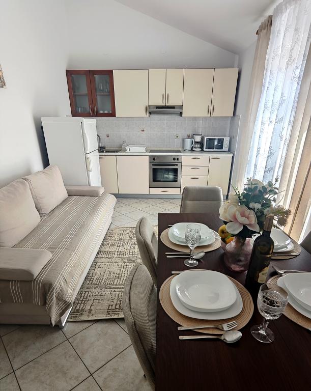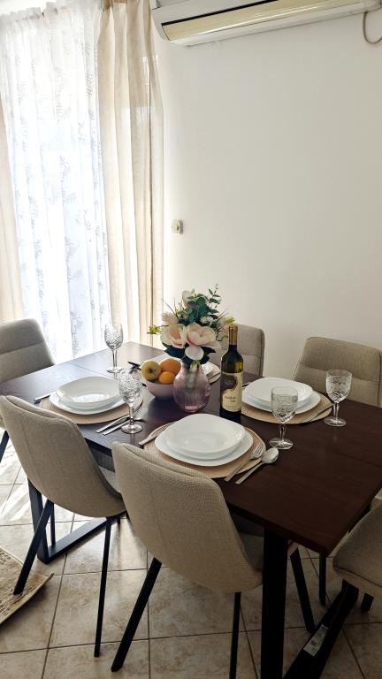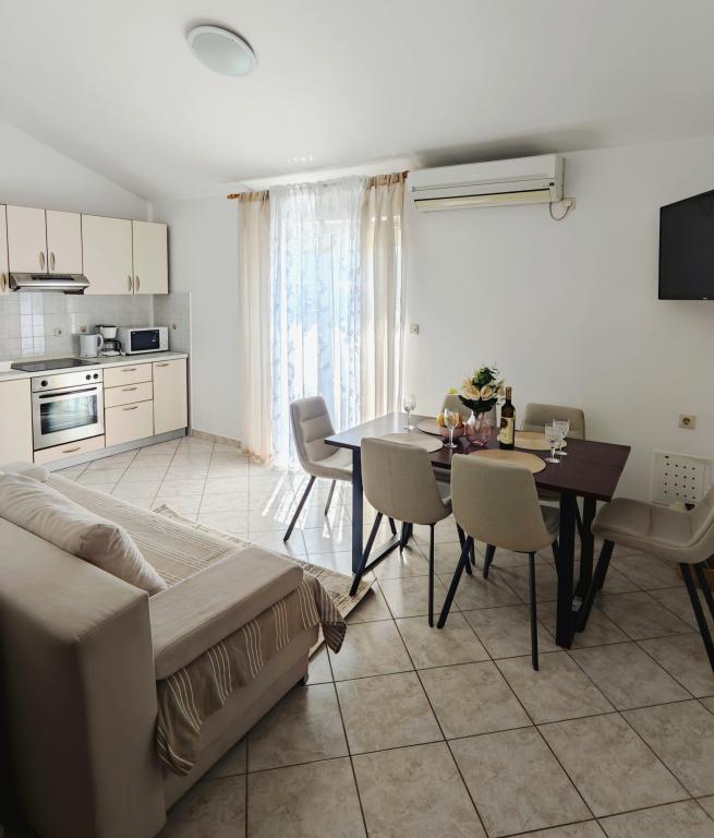 Apartmány Petrinić se nachází 100 metrů od centra města Lopar. Nabízí kvalitní ubytování a příjemný pobyt pro Vaši rodinu a přátele. Jsou umístěny v klidné lokalitě, takže můžete strávit dovolenou více uvolněnou a bezstarostnou. Nedaleko se nachází restaurace, velké nákupní centrum Konzum, pekárna, pošta, dětské hřiště, kavárna, lékárna, autobusová zastávka. Každý apartmán zahrnuje: dvě velké ložnice pro 4 osoby plus přistýlka (4 1), koupelna, pračka, kuchyň, tv / sat, internet, klimatizace, balkon, parkoviště a veškeré potřebné vybavení (ložní prádlo, kávovar, rychlovarná konvice, lednice, nádobí). K dispozici je také písečná pláž v blízkosti. Nejbližší pláž je 500 metrů od našeho domu a nejznámější "Paradise Beach" je jen 800 metrů od hotelu. Doufáme, že si vyberete apartmány Petrinić a těšíme se na Váš příjezd! Rodina Petrinić