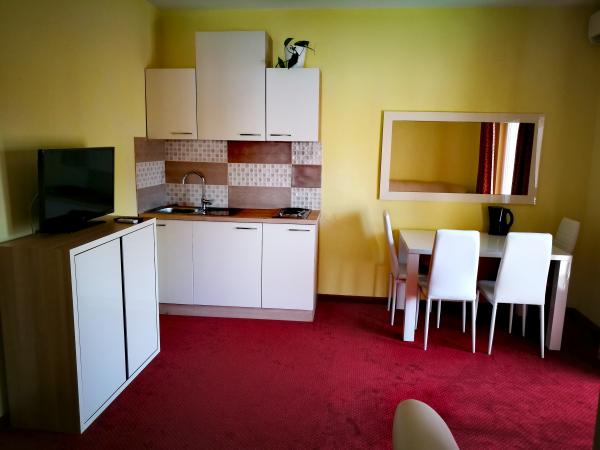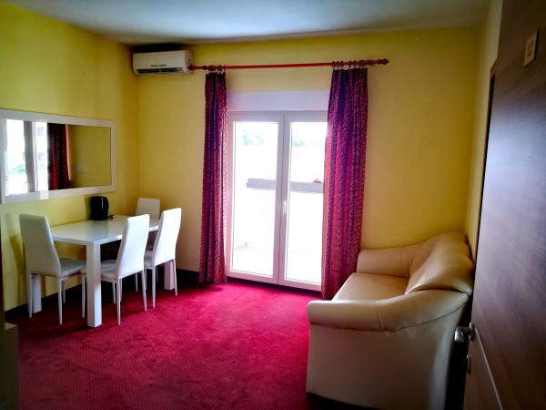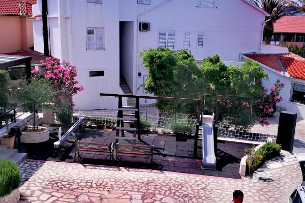 Úplně a nově zařízené apartmány a pokoje ve vyvýšené části Loparu na ostrově Rab. Nacházíme se 300m od moře a krásné a známé pláže Paradise, 500m od prvního obchodu a 300m od centra. Hosté mají k dispozici venkovní bazén se sluneční terasou a dětské hřiště. Pokoje a apartmá jsou zařízené v teplých tónech. Hosté ve dvoře domu mají k dispozici restauraci ala cart. Všichni hosté mají prostorné a bezplatné parkoviště v areálu domu.