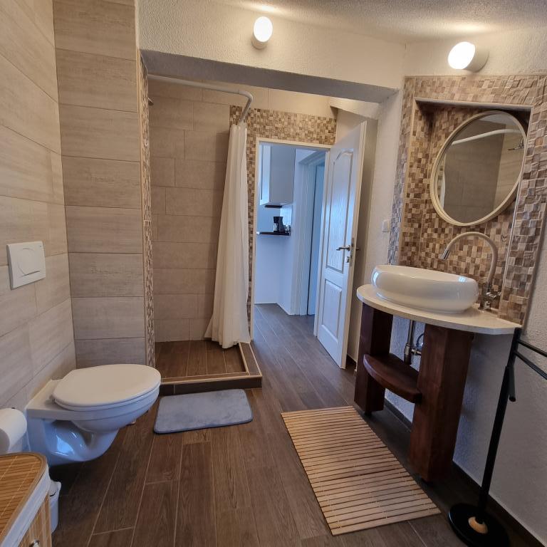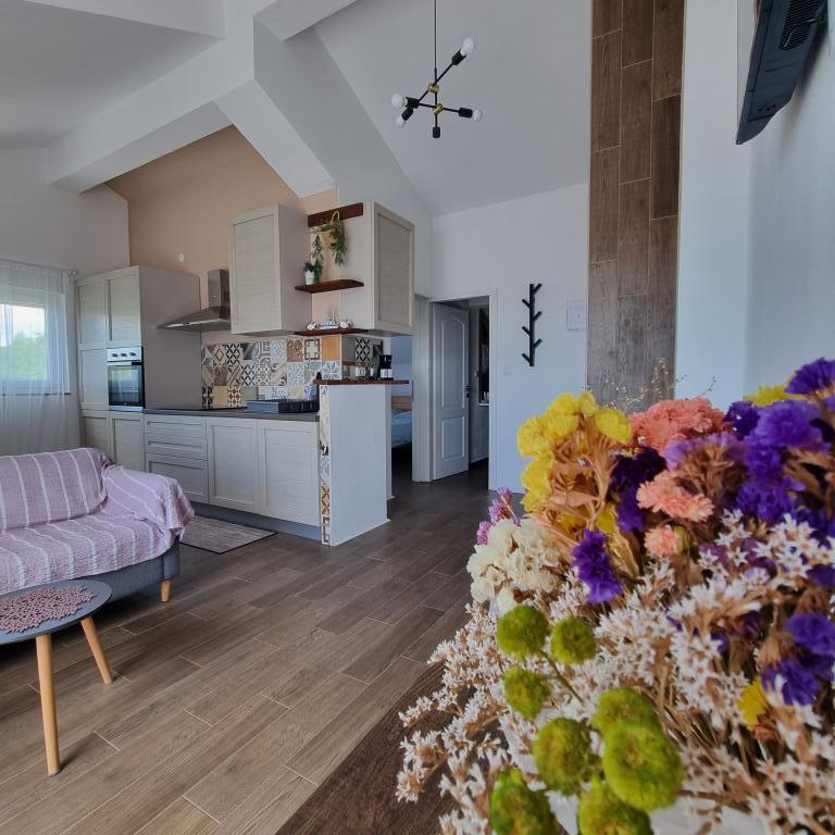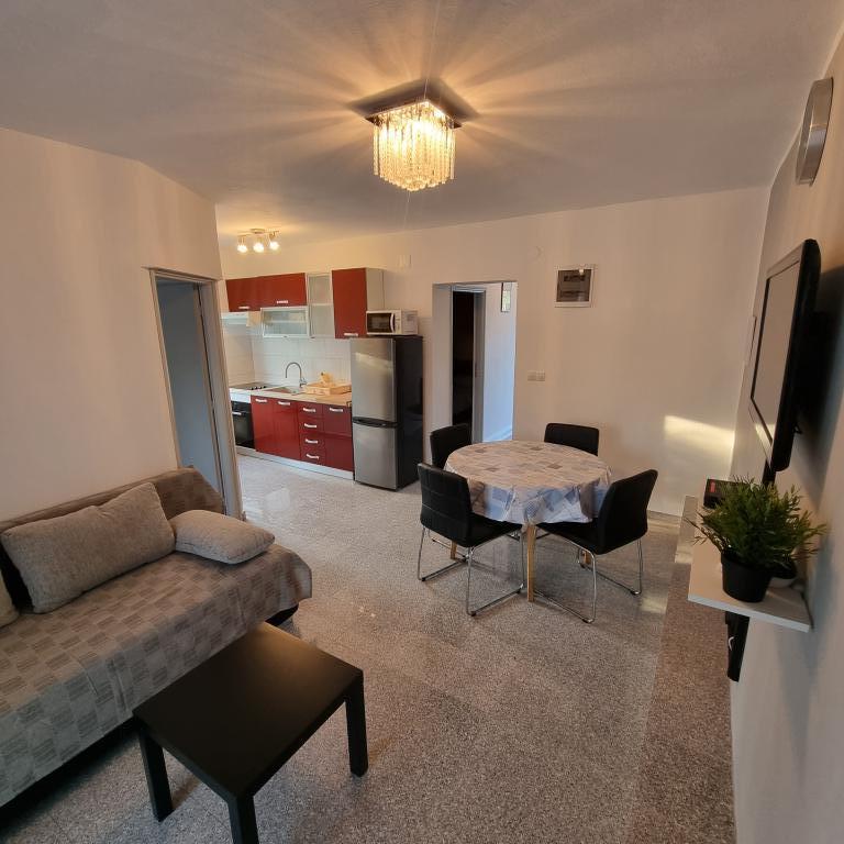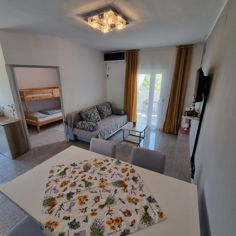 Pobytová taxa je v ceně.Naše apartmány nabízejí komfortní ubytování s vybavenou kuchyní, klimatizací, TV a bezplatným Wi-Fi. Hosté mohou využívat prostornou zahradu, venkovní gril pro přípravu jídel a větší parkoviště. Domácí mazlíčci nejsou povoleni. Možnost použití dětské postýlky. Praní prádla - dodatečné náklady.