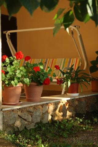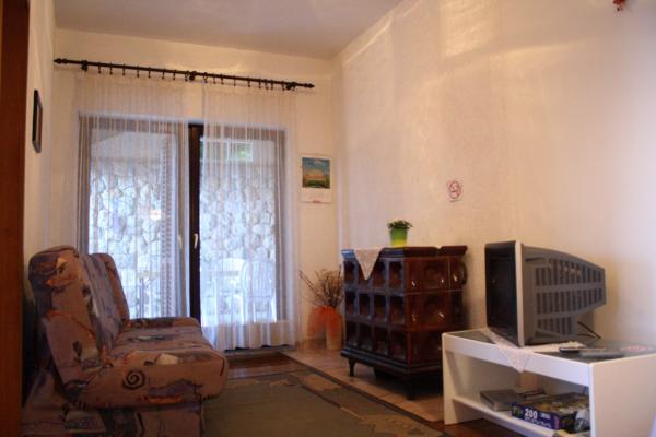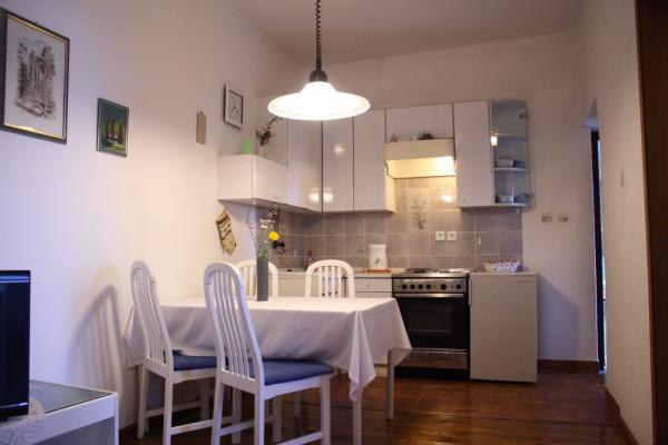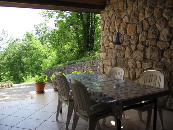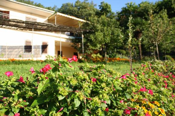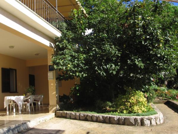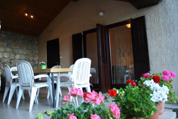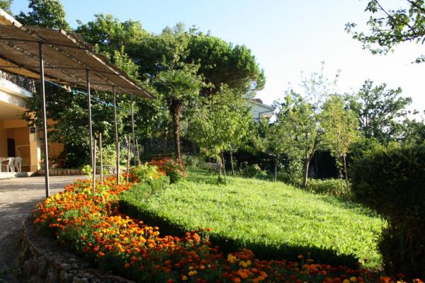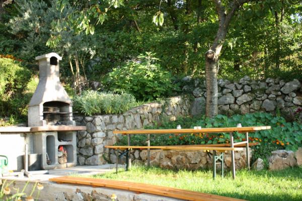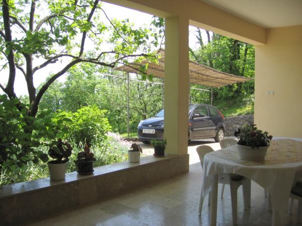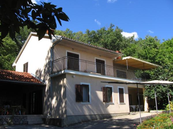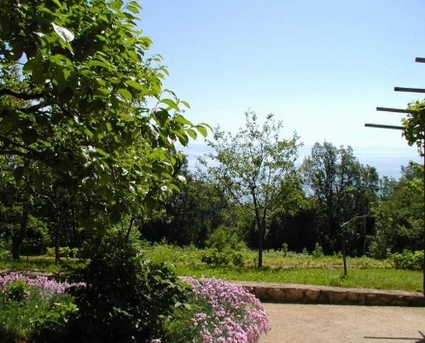 Dům s 2 byty. Nad městem Lovranu, 2,5 mil od centra Lovran, ve svahu, přímo u lesa, v zeleni. Společné: zahrada - květiny a stromy, ovocná zahrada. Grilování. Parkovací místo u domu.