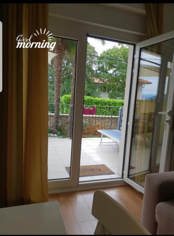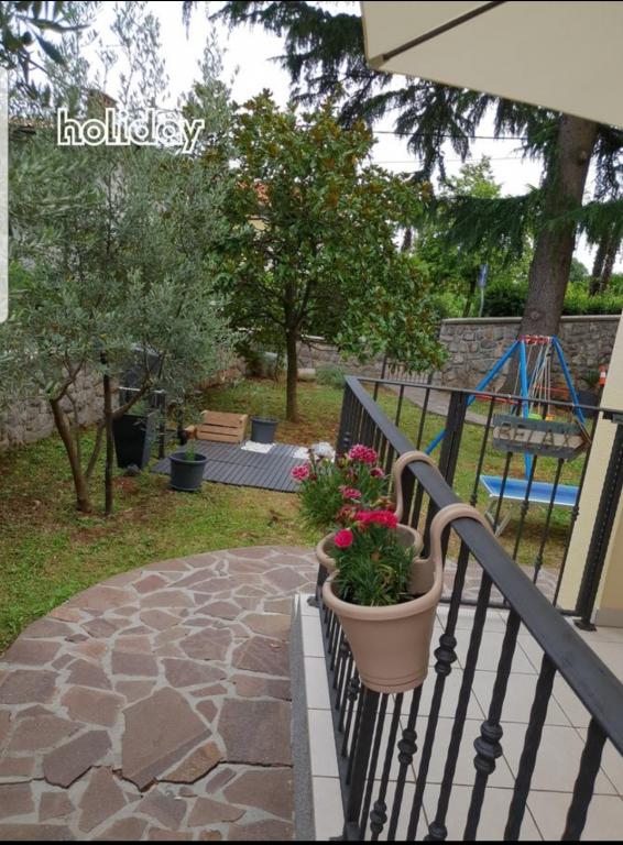 Moderně vybavené apartmány v přízemí s částečným výhledem na moře, zahrada, venkovní gril, dětské hřiště. Každý apartmán má vlastní parkovací místo na místě. Budova má dva apartmány, jeden větší, který pojme 4 osoby, ve 2 ložnicích, koupelně, kuchyni, obývacím pokoji s jídelním koutem a částečně krytou velkou terasou. Druhý apartmán je o něco menší, ubytuje také 4 osoby uvnitř, jednu ložnici, obývací pokoj s rozkládací pohovkou, která poskytuje ubytování pro další dvě osoby, koupelnu, obývací pokoj s kuchyní a částečně krytou terasu. Oba apartmány mají plně vybavenou kuchyň se vším potřebným. Větší apartmán nabízí kromě pračky také sušičku. Oba apartmány mají myčku.