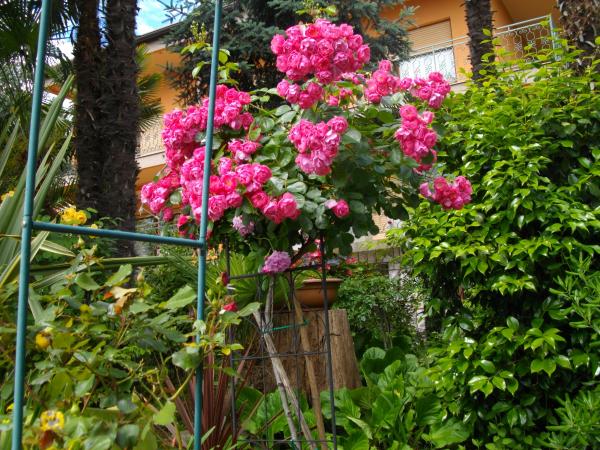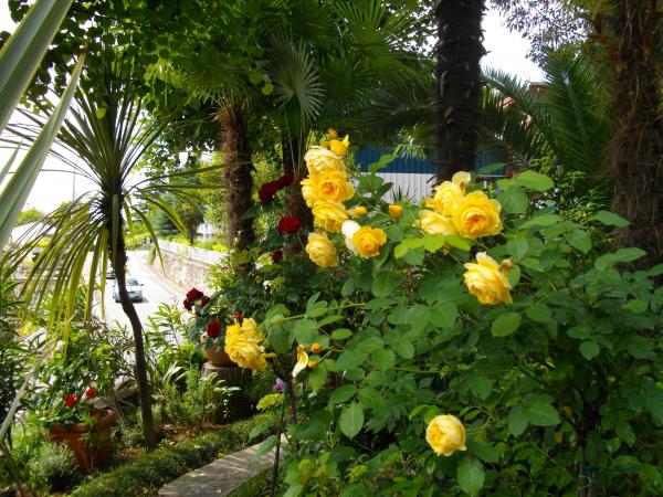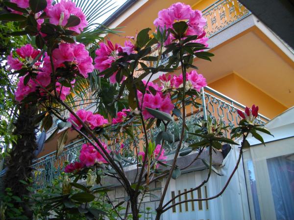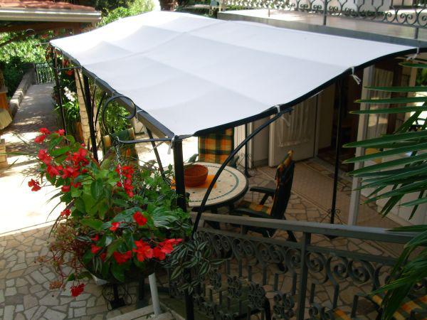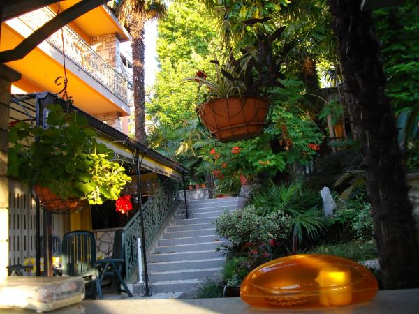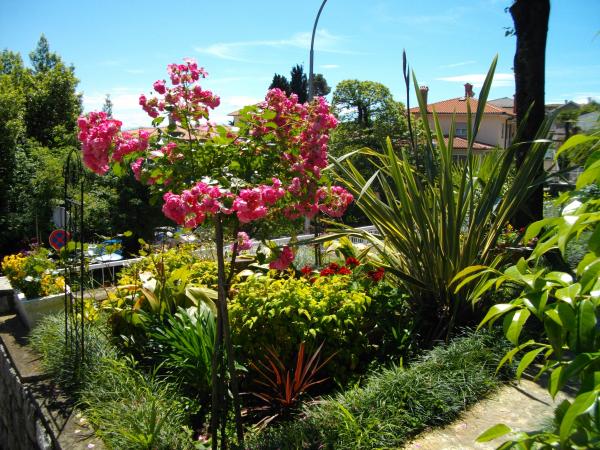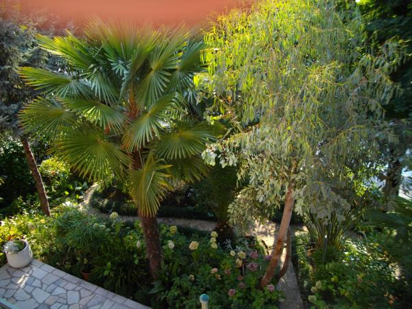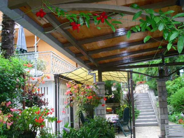 Byt se nachází v přízemí rodinného domu. Zvláštností je velká zahrada. Spousta stromů, růží, keřů a květin. V zahradě je krytý altán s grilem, plně vybavenou kuchyní a velkým zahradním stolem. Zahradní prostor je doplněn prostorem bytu a vytváří celek, kde si hosté mohou vychutnávat příjemnou svěžest, klid a zeleň. Klidná oáza v dosahu pláže a centra letoviska s veškerou občanskou vybaveností. SAT TV, Klimatizace, WiFi 0-24h. Parkování na zahradě.