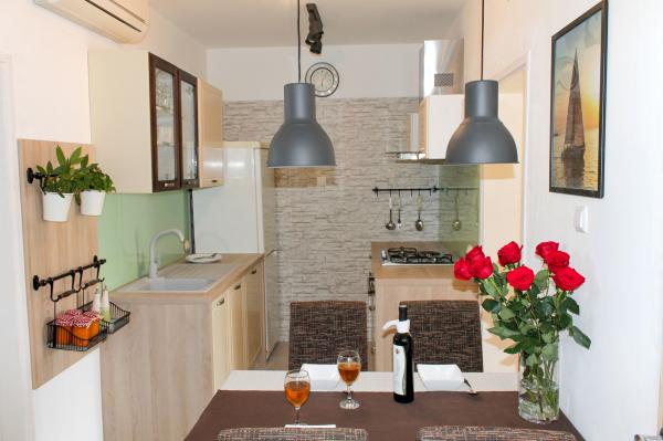 Apartmány se nacházejí v klidné části města, obklopené zelení mají velký dvůr, parkoviště, gril. Trajektový přístav v Preku je vzdálený 5 minut. autem a trajekt do Zadaru trvá 20 minut. Naše apartmány se nacházejí v blízkosti centra, obchodů, kaváren, restaurací do 5 min. chodit. Po celém ostrově je cyklostezka (většinou u moře), která umožňuje hostům krátkou jízdu do sousedních míst: Sutomiscica, Poljana, Preko, Ugljan ... Ostrov Ugljan je bohatý na památky, z nichž zvláště zdůrazňujeme pevnost Sveti Mihovil. St. Mihovila každoročně navštěvuje desítky tisíc turistů, což z něj činí jeden z nejnavštěvovanějších kulturních památek v okrese Zadar. Doporučujeme také procházet starobylými olivovými háji a navštívit jezero Cezunj v Lukoranu a starobylý mlýn v Mulinamě. Z Zadaru si můžete vychutnat příjemnou jízdu s trawlerem, kde můžete navštívit Zadarský kanál a Zadar s jeho historií, památkami a krásou příběhu pro sebe.