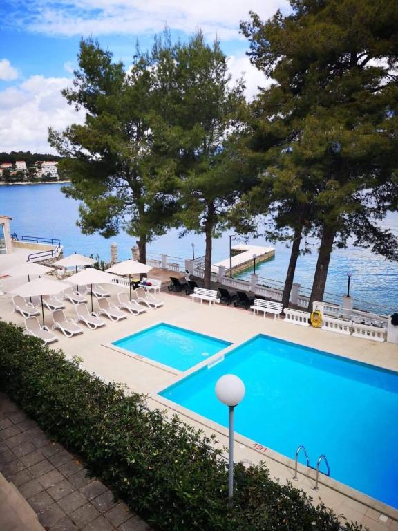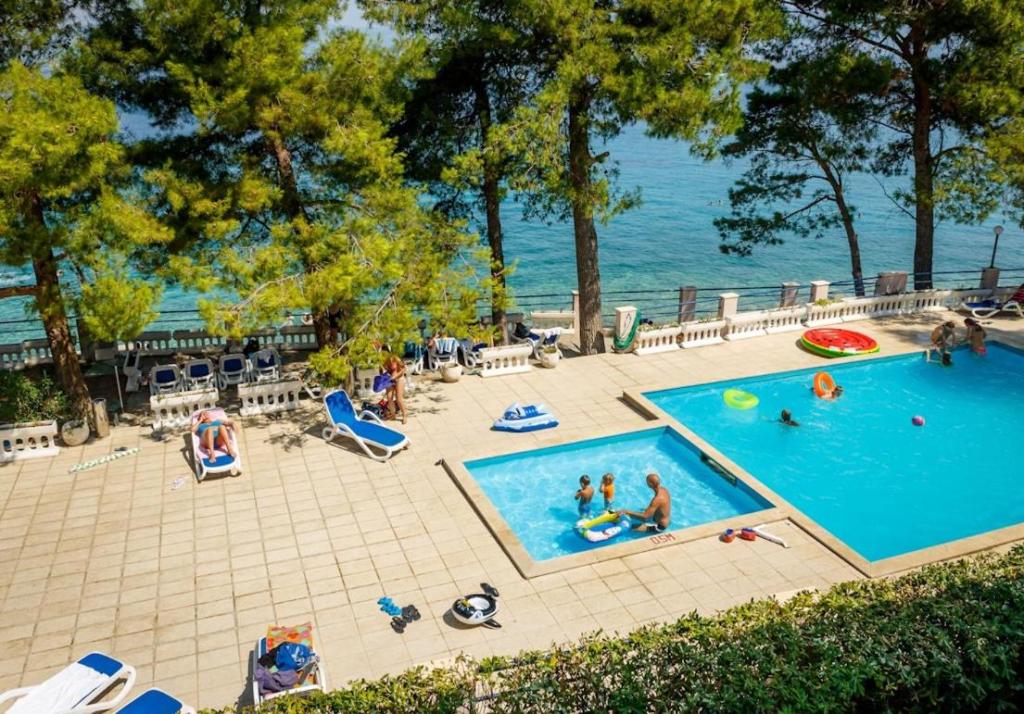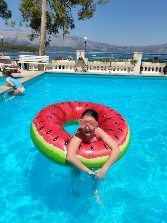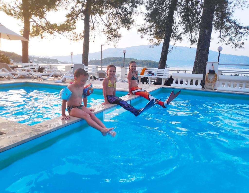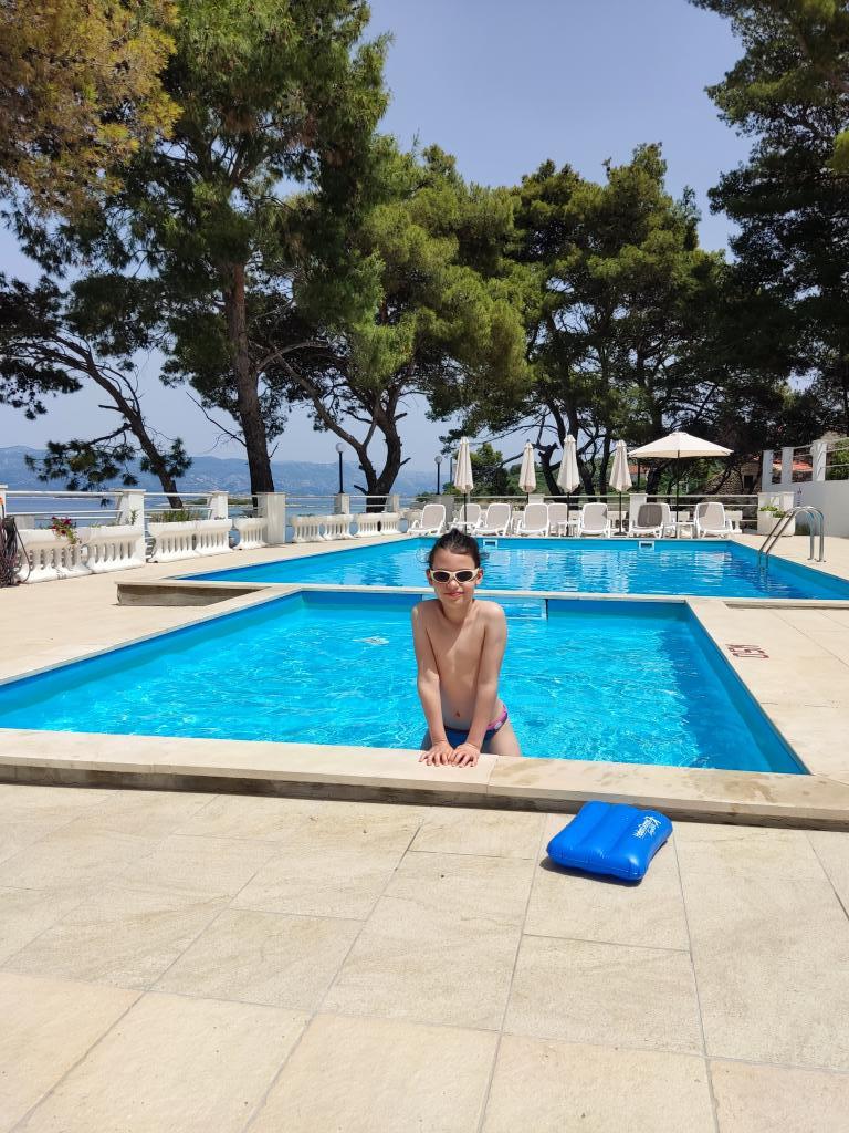 Výborná poloha u čistého moře, k dispozici je i bazén, který si oblíbily především děti, pěkná terasa, příjemný stín velkých borovic, příjemný personál, snadno dostupné parkování zdarma, blízko pláže...a opravdu dokonalé místo pro odpočinek vašeho těla i duše