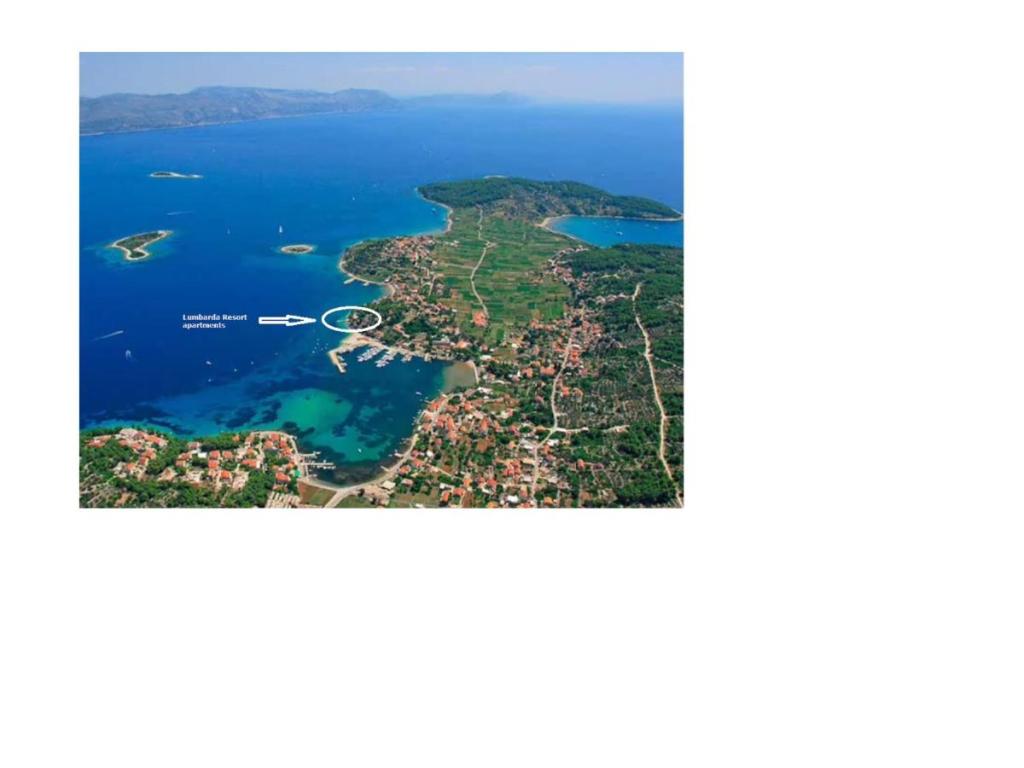 Plně a moderně vybavený apartmán F2 Lumbarda Resort se nachází v krásné Lumbardě v malém turistickém letovisku se spoustou zeleně, přímo u moře, 70 metrů od pláže Prvi Žal. Apartmán se skládá z ložnice s lůžky pro dvě osoby, kde lze v případě potřeby přidat přistýlku pro třetí osobu, obývacího pokoje s rozkládací pohovkou pro dvě osoby, kuchyně, koupelny se sprchovým koutem a prostornou krytou terasa s výhledem na moře a hory se zahradním trojsedadlem, stolem se čtyřmi židlemi a doplňkovým křeslem. Kuchyň je vybavena elektrickou troubou, mikrovlnnou troubou, rychlovarnou konvicí, elektrickou varnou deskou, myčkou, velkou lednicí s mrazákem a kuchyňským náčiním. Byt je klimatizovaný a má satelitní TV. V rámci resortu, kde se apartmán nachází, mohou hosté zdarma využívat venkovní bazén, zahradu, WiFi a parkoviště. V bezprostřední blízkosti se nachází plážový bar, obchod a několik restaurací a kaváren