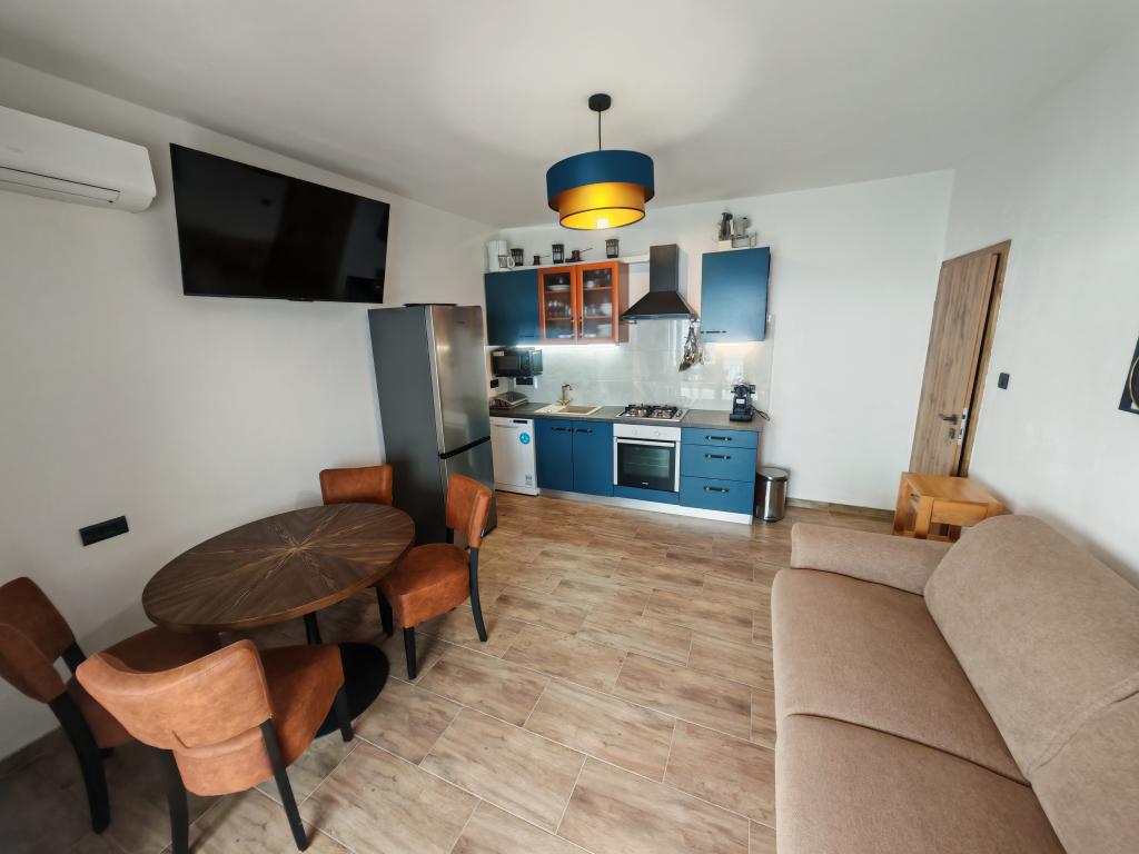 Apartmány se nacházejí přímo u moře s výhledem na ostrovy Cres a Lošinj, ideální pro klidnou a odpočinkovou dovolenou bez většího hluku a shonu. Jsou plně vybaveny. Centrum města je vzdálené pouhých 300 metrů, kde najdete obchod, několik restaurací, kavárnu a obchod s ovocem a zeleninou, bankomat. Písečná pláž pro děti je vzdálená 200 metrů. Před domem se nachází malá zelená oáza s bohatou zeleninovou zahradou, kde se hosté mohou sami občerstvit. Apartmány mají vlastní parkoviště, venkovní grilovací terasu v přízemí, kterou můžete využít, a pokud chcete něco navíc, hostitelé jsou ochotni zajistit vlastního kuchaře. Hluk není povolen před 9:00 a po 23:00. Lun se nachází v severní části ostrova Pag, bohatého na tisícileté olivovníky, a je jedinečnou oblastí v této části Středomoří. Na ploše 400 hektarů se rozkládá přes 80 000 olivovníků. Lun se nachází nedaleko Novalji, nacházejí se zde ostrovy Rab, Lošinj, Cres, Silba a 5 národních parků. Denní výletní lodní spojení s Rabem,