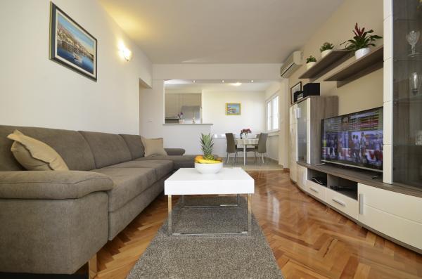 Elegantní a nově zrekonstruovaný byt Anita se nachází v centru města v bytovém domě ve 4. patře bez výtahu. Byt nabízí krásný výhled na moře a výhledem na ostrovy Brač a Hvar. Na pláži, četné restaurace, bary, obchody a pekařství nebo co byste mohli potřebovat během dovolené je pouhých 5 minut od tohoto bytu. V bytě jsou dvě ložnice. Jedna s manželskou postelí a druhá se dvěma samostatnými lůžky, ale s možností, aby se jako jedna manželská postel. Každý pokoj má TV se satelitním příjmem. Tento byt má veškeré potřebné vybavení, stejně jako klimatizaci, internet, satelitní TV, pračkou, myčkou na nádobí, varnou konvicí a fénem. V přední části bytu je soukromé parkovací místo. V případě potřeby jsme schopni zajistit a organizovat taxi dopravu za úplatu z letiště nebo někde jinde, kde je třeba. Makarská je ideálním místem k odpočinku, protože je obklopen krásnou přírodou, jízda na horském svahu, moře a četnými plážemi.