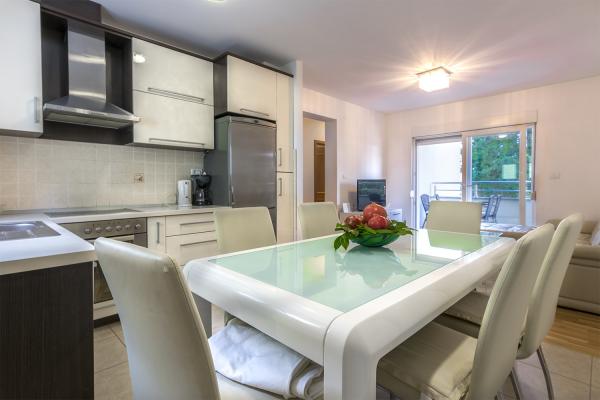 Apartment Makarska se nachází v klidnějším centru města Makarska. Nachází se pouhých 300 m od moře a 10 minut chůze od centra Makarské, náměstí Kačic. Byt se skládá z obývacího pokoje, moderní kuchyně se všemi potřebnými spotřebiči, jídelny, dvou pokojů s celkem 5 lůžky, balkonů a koupelny. Z balkonu je krásný výhled na Biokovo. Parkování je zajištěno samotnou budovou.