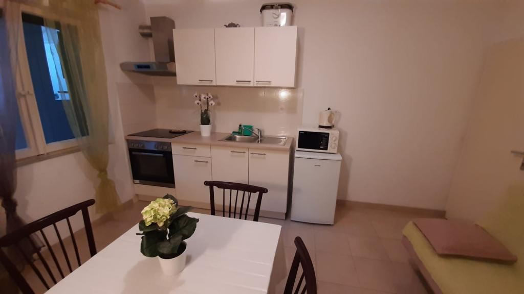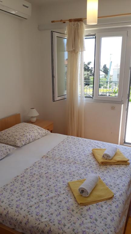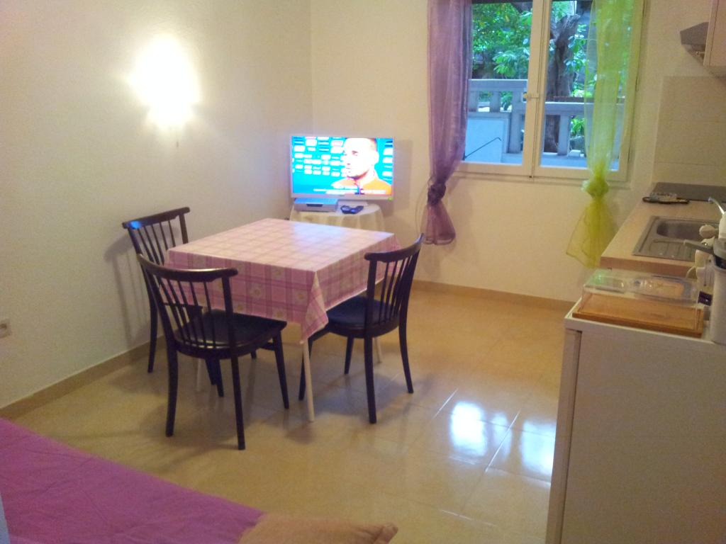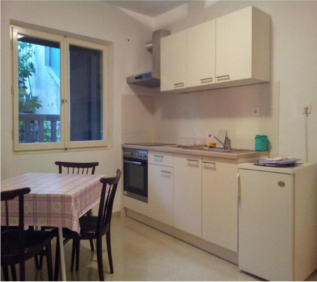 Ubytování je v domě v prvním patře s pěknou terasou s výhledem na moře. Velký byt se skládá z kuchyně s jídelnou, chodby, 2 ložnic, každá ložnice má vlastní koupelnu. V přední části je velká terasa. 250 m od pláže. V blízkosti obchody, pekárna, lékárna, restaurace, pláže. Minimální délka pobytu 7 nocí.