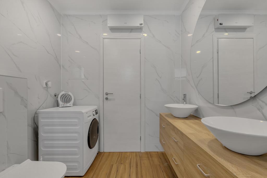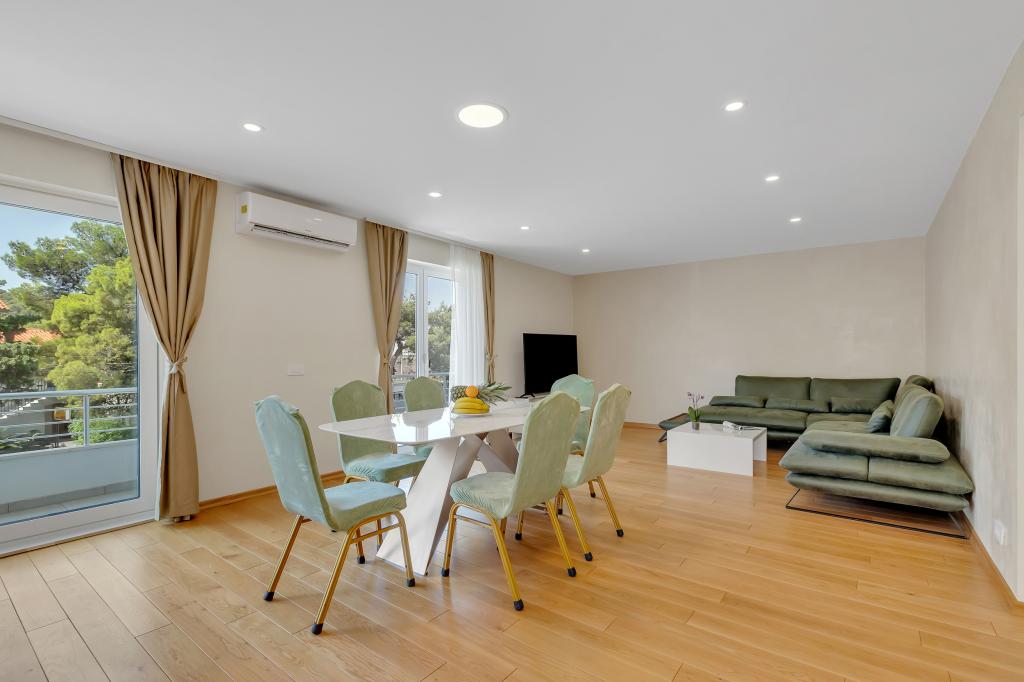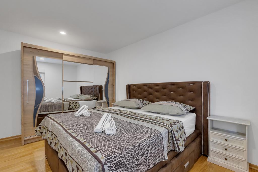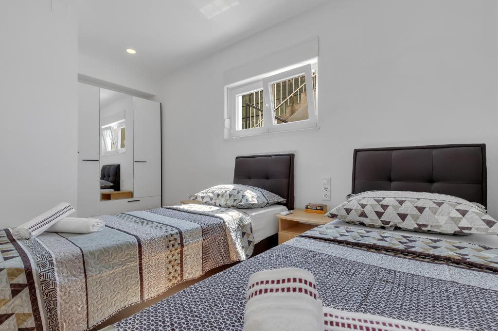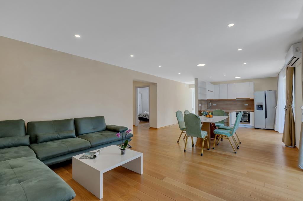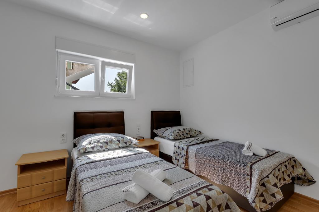 Plně vybavený apartmán/apartmán se dvěma pokoji (dvoulůžkový, postel 180x200 a druhý s 2x samostatnými lůžky, které lze na přání spojit), 2 koupelnami, velkým obývacím pokojem s kuchyní (dohromady 40m2) Byt má vše, co potřebujete na dlouhou dobu a pohodlný pobyt a nachází se v centru Makarské