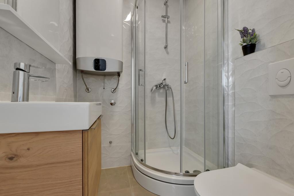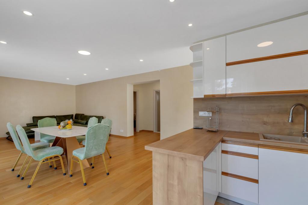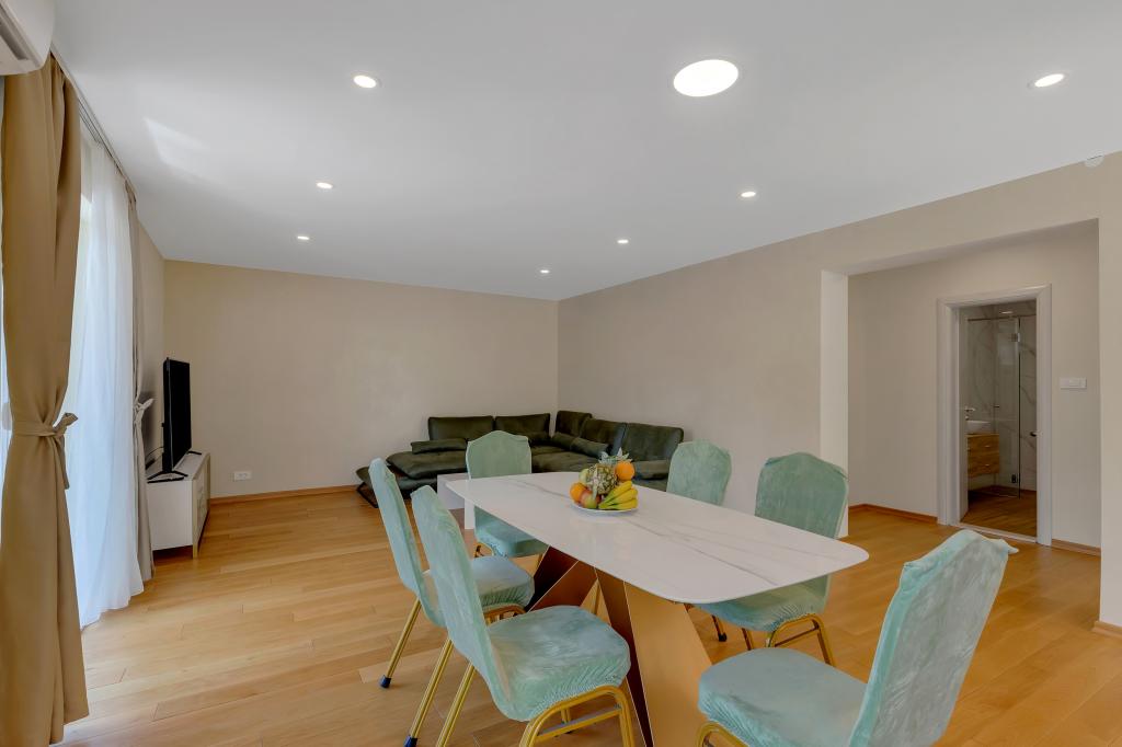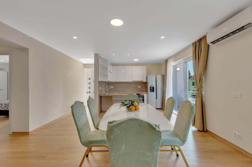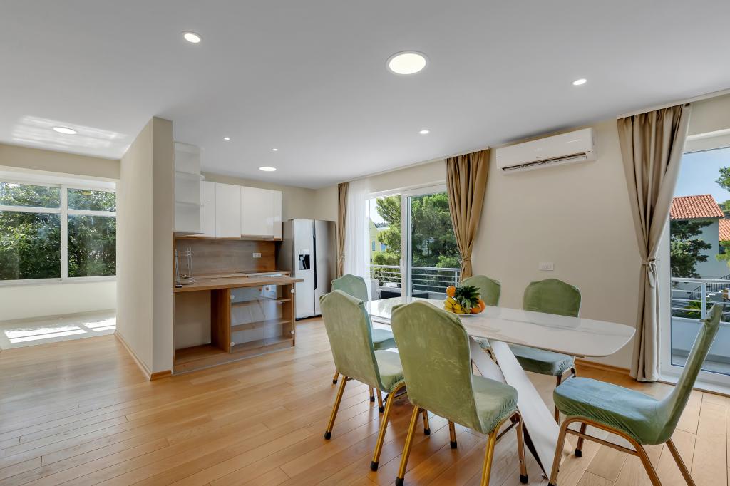 Tento plně a moderně vybavený apartmán se nachází v centrální části Makarské. Má 2 ložnice, 2 koupelny, velký obývací pokoj o rozloze 45 m2 s kuchyní a velkým balkonem. Rozkládá se na 100 m2. Všechny pokoje jsou klimatizované.