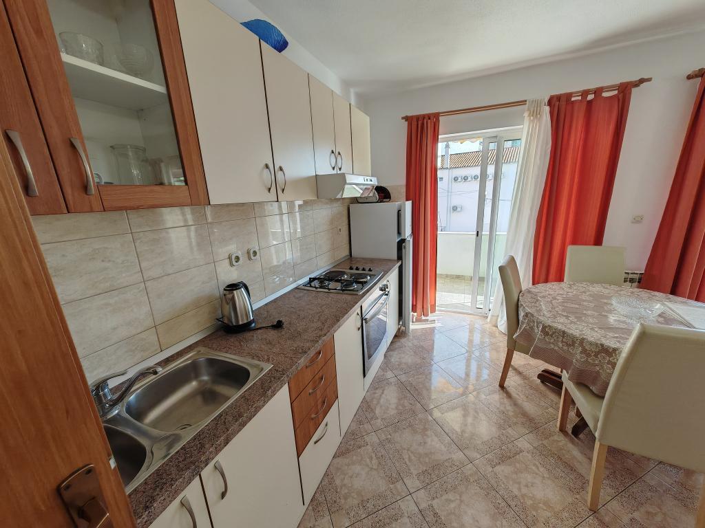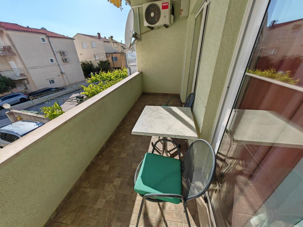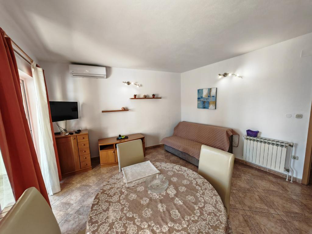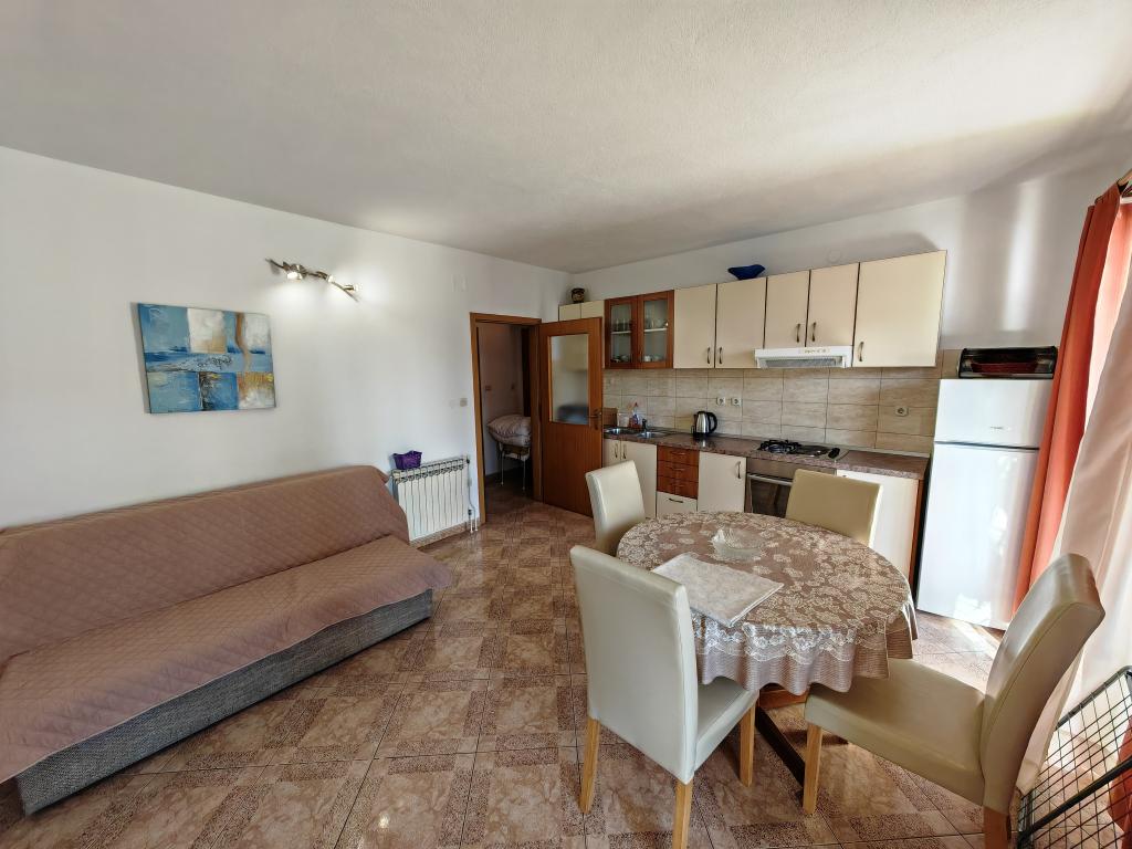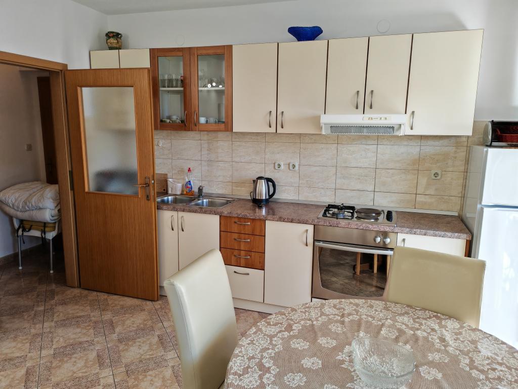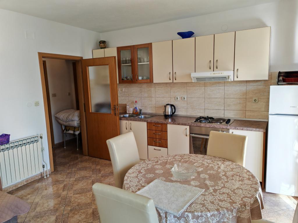 Apartmán v prvním patře apartmánového domu v bezprostřední blízkosti pláže, vzdálené přibližně 50 metrů. Velký balkon s výhledem na moře, bezplatné Wi-Fi, bezplatné parkovací místo před budovou. Apartmán je vhodný pro 3 dospělé osoby, pár s jedním nebo dvěma malými dětmi. Výborná lokalita, dobře vybavený a zařízený.